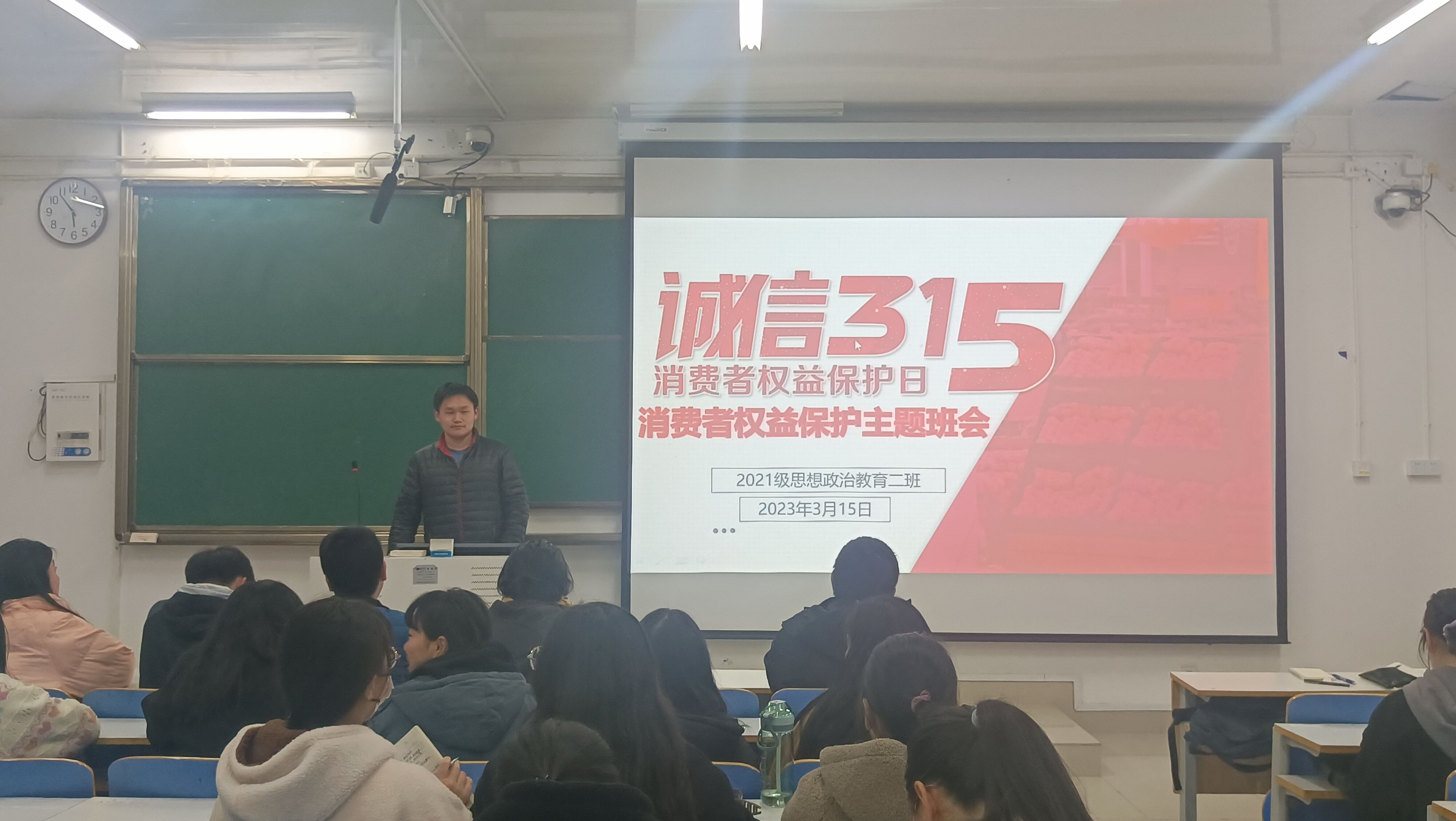 3月15日下午,德赢AC米兰官网2021级思想政治教育二班在社科楼514教室召开消费者权益保护主题班会。2021级思想政治教育二班全体同学参加此次主题班会。班会由副班长任振豪主持。