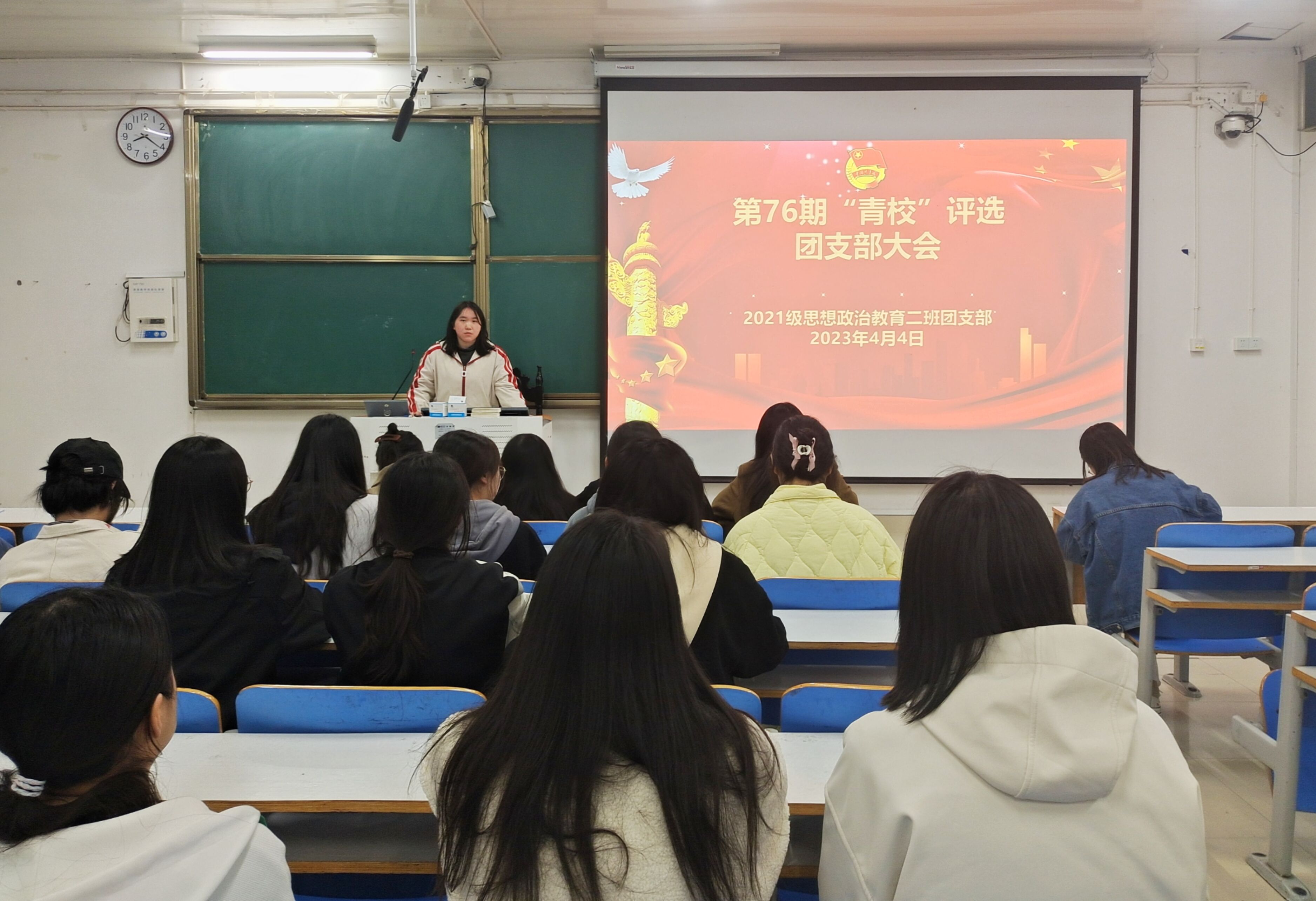 4月4日下午,德赢AC米兰官网2021级思想政治教育二班在社科楼514教室召开第76期“青校”评选团支部大会。2021级思想政治教育二班全体团员参加此次会议。会议由团支书王婧欣主持。