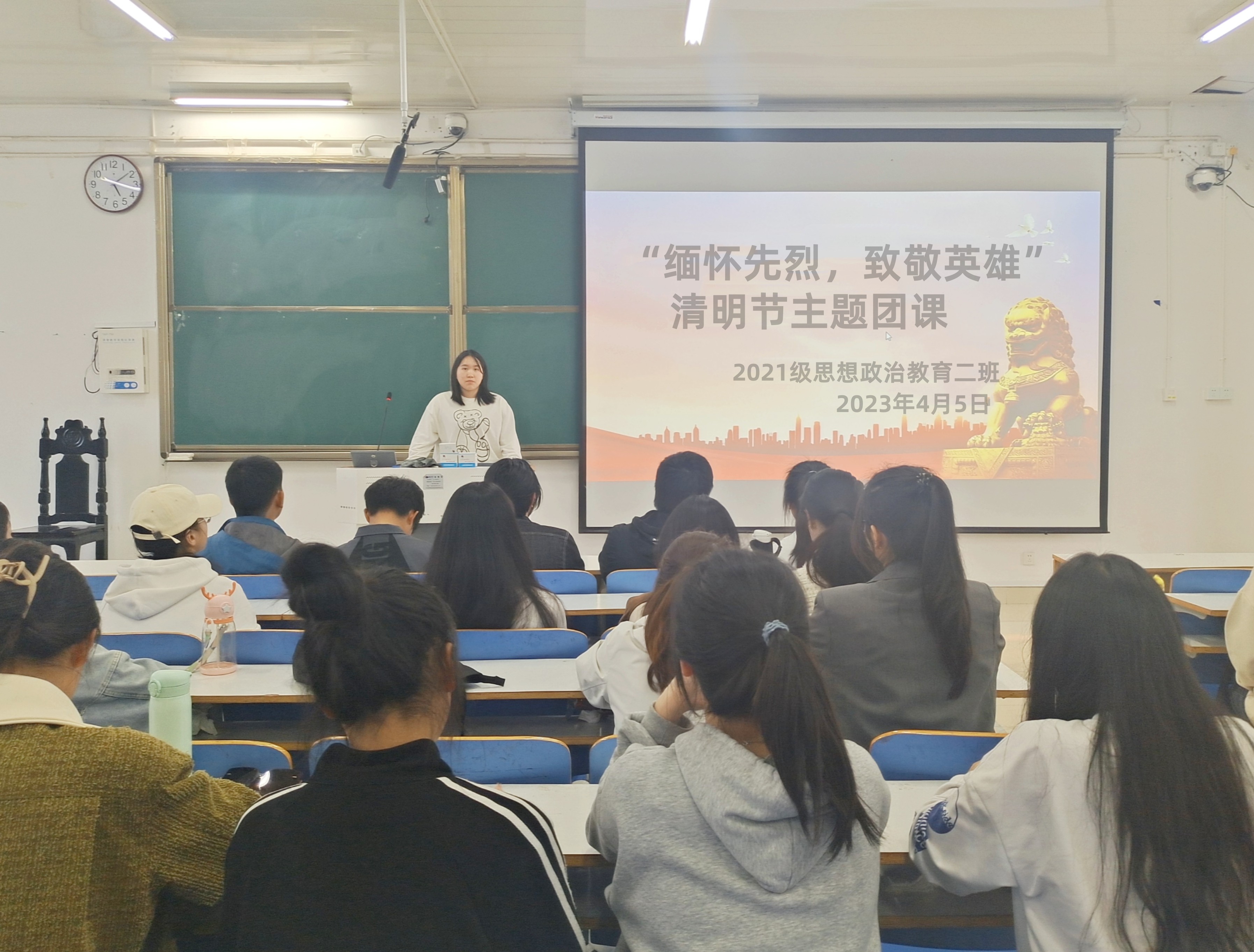 4月5日下午,德赢AC米兰官网2021级思想政治教育二班在社科楼514教室召开“缅怀先烈,致敬英雄”清明节主题团课。2021级思想政治教育二班全体团员参加此次主题团课。团课由团支书王婧欣主持。
