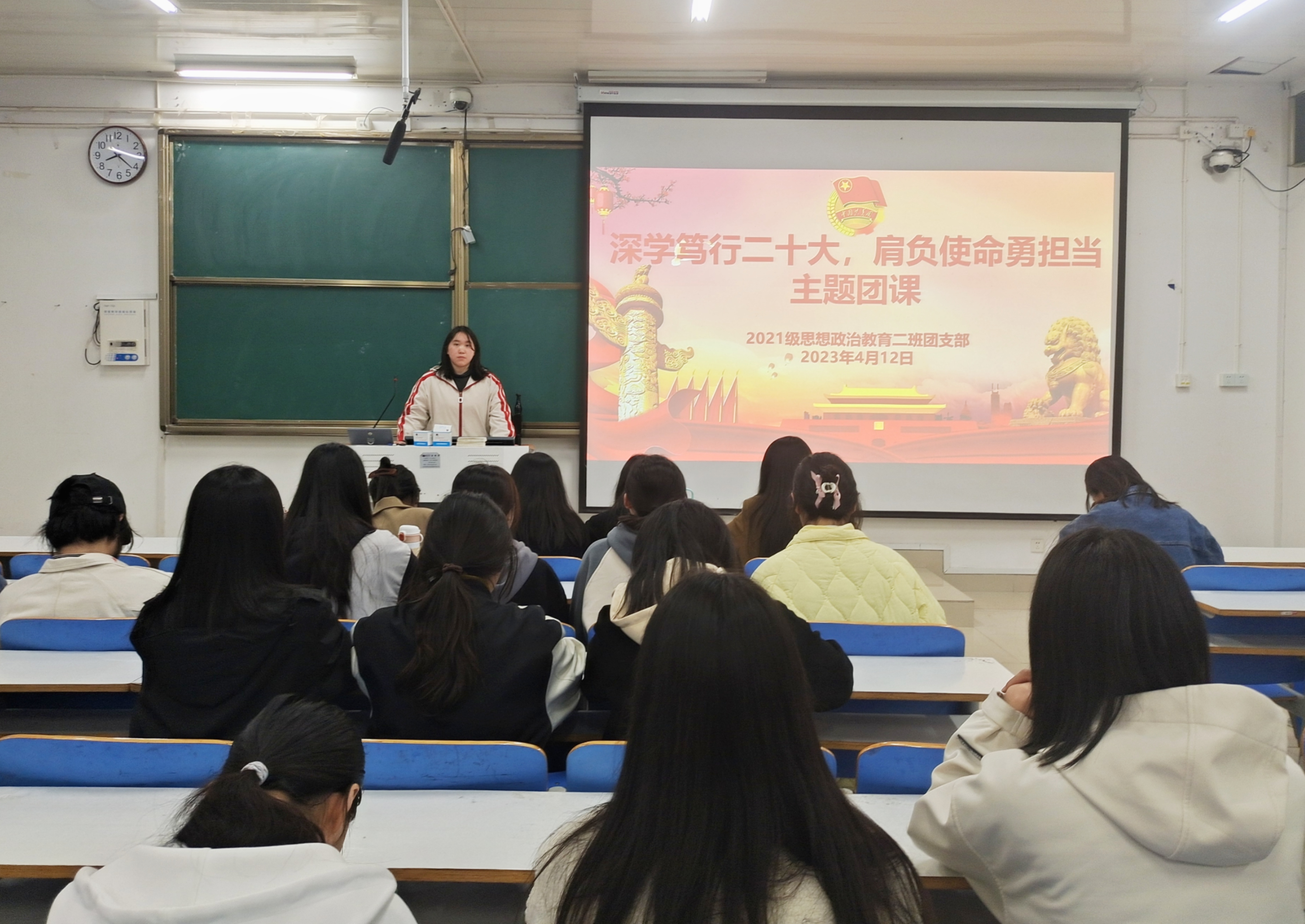 4月12日下午,德赢AC米兰官网2021级思想政治教育二班在社科楼514教室召开“深学笃行二十大,肩负使命勇担当”主题团课。2021级思想政治教育二班全体团员参加此次团课。团课由团支书王婧欣主持。