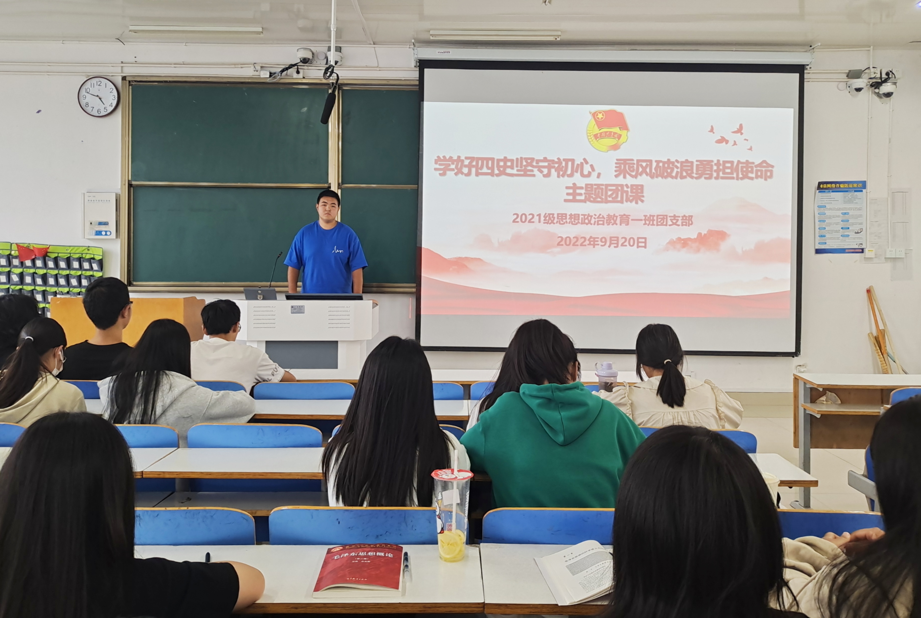 9月20日下午,德赢AC米兰官网2021级思想政治教育一班在社科楼514教室召开“学好四史坚守初心,乘风破浪勇担使命”主题团课。2021级思想政治教育一班全体团员共同参加了本次团课,团课由团支书戴翰林主持。