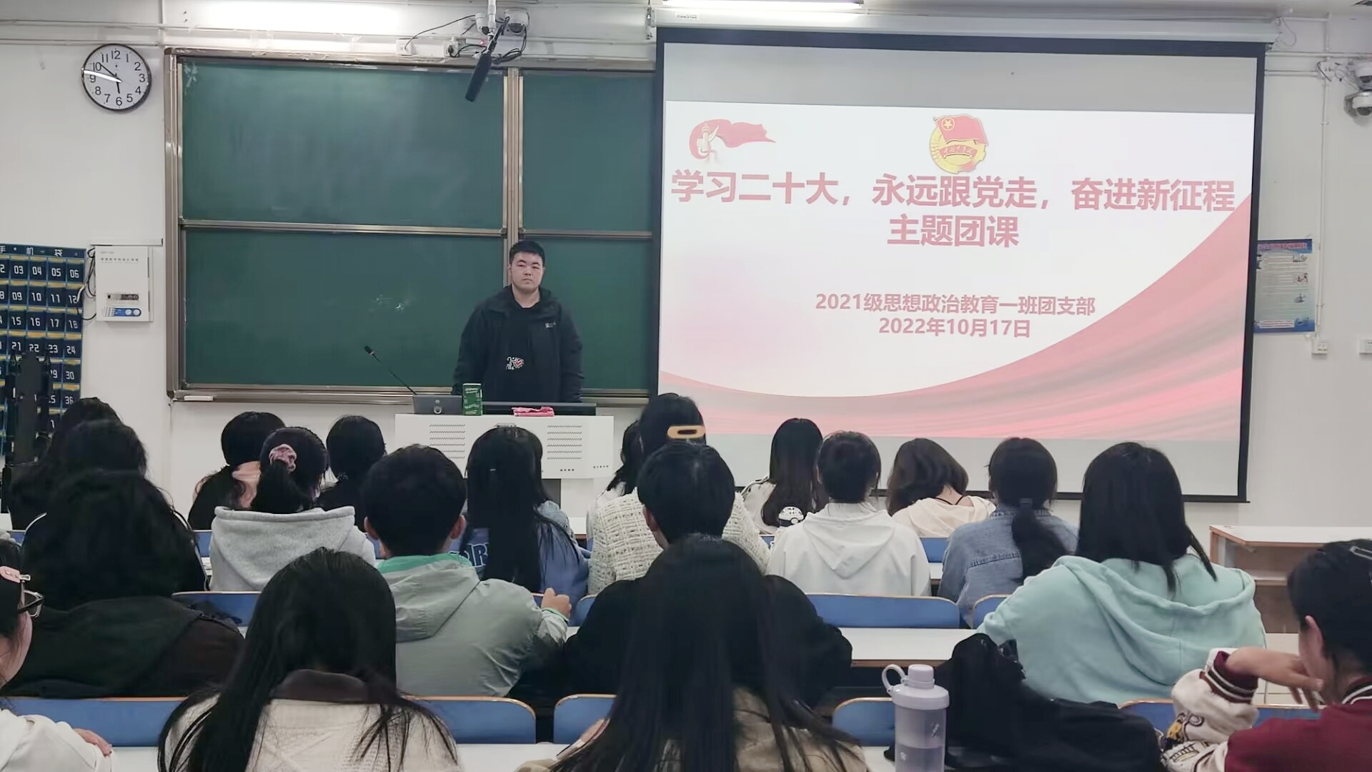 10月17日下午,德赢AC米兰官网2021级思想政治教育一班在社科楼514教室召开“学习二十大,永远跟党走,奋进新征程”主题团课。2021级思想政治教育一班全体团员共同参与本次团课。团课由团支书戴翰林主持。