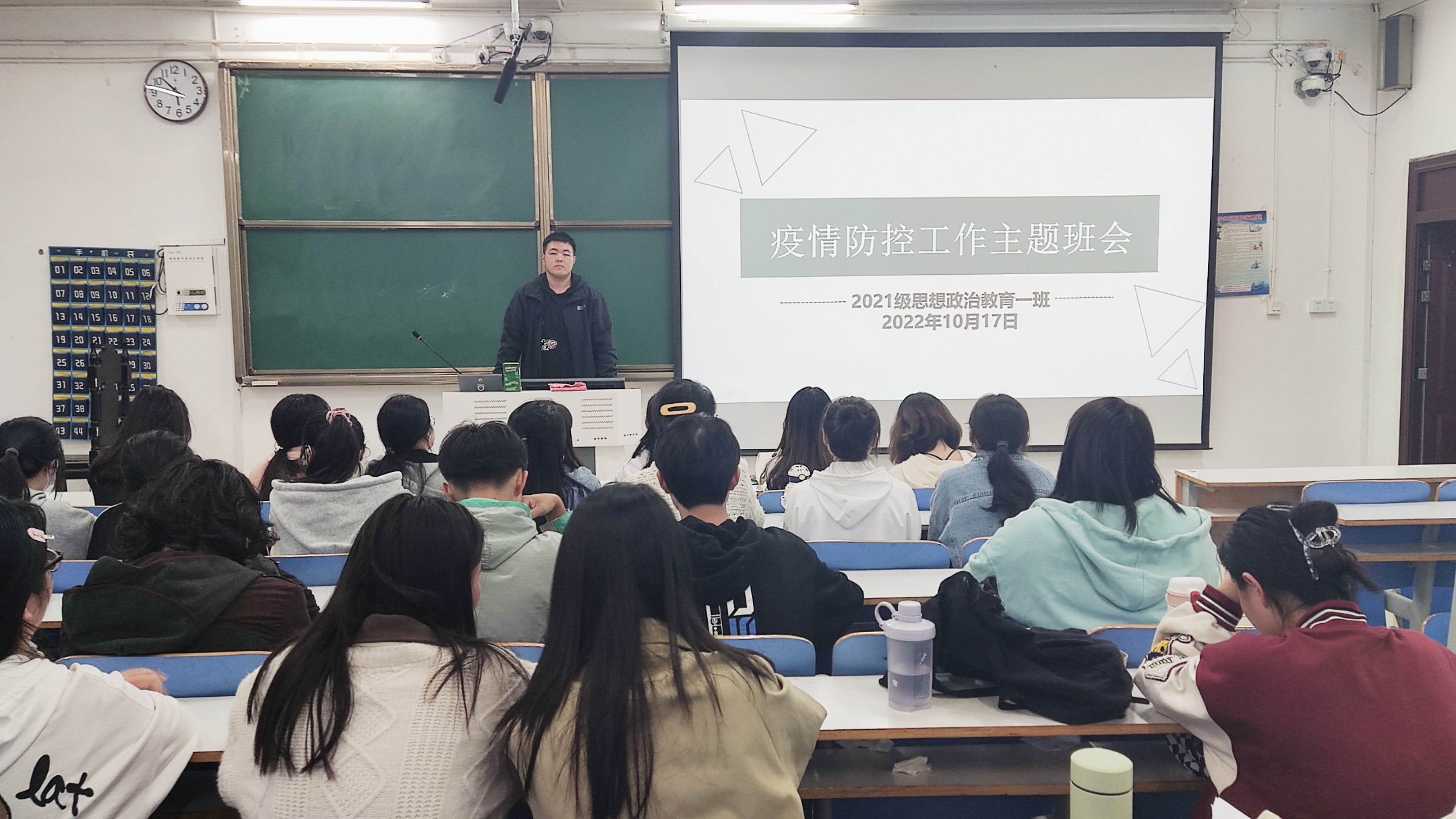 10月17日下午,德赢AC米兰官网2021级思想政治教育一班在社科楼514教室召开“疫情防控工作”主题班会。2021级思想政治教育一班全体成员共同参与了本次班会。班会由团支书戴翰林主持。