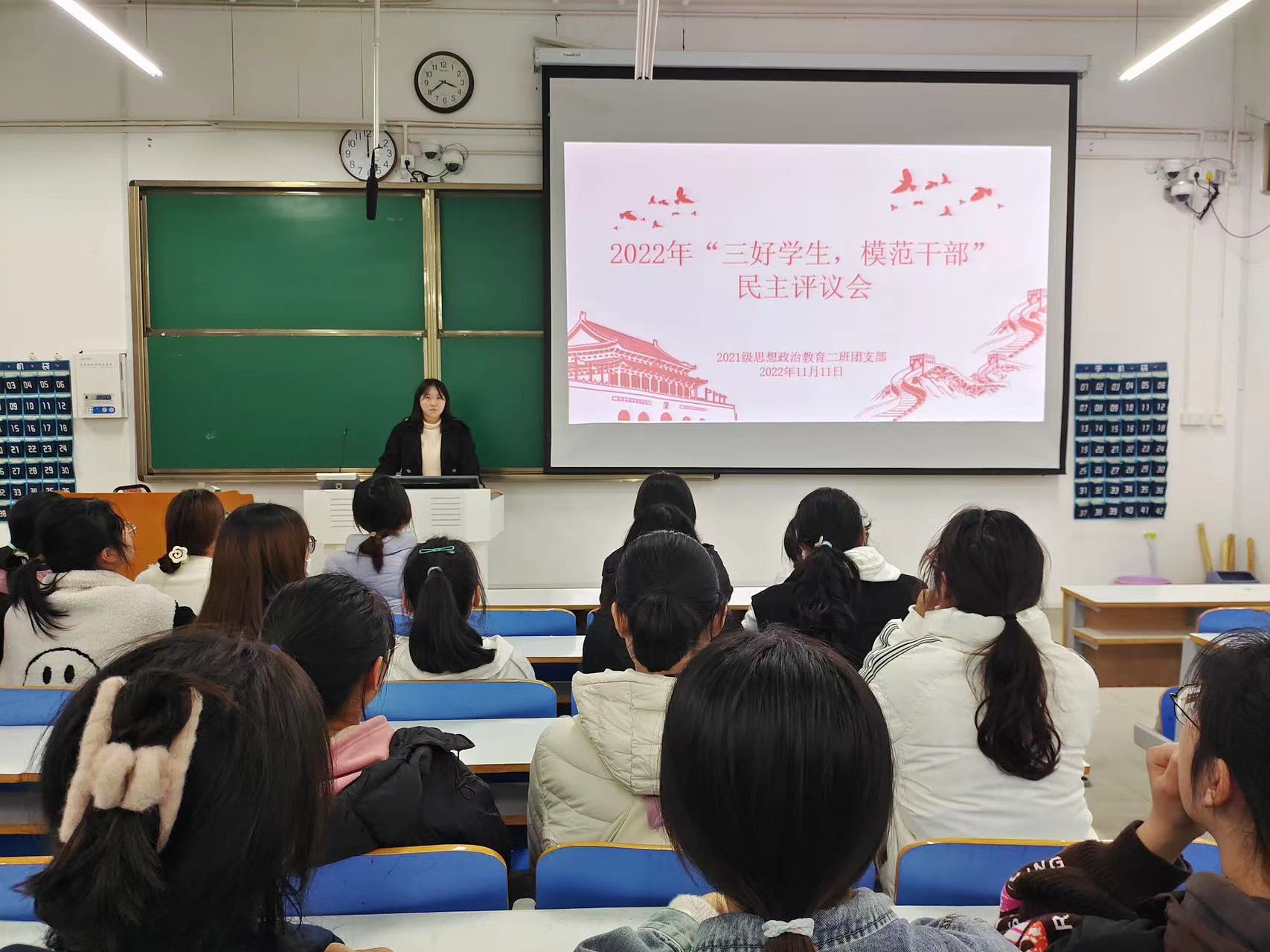 11月11日下午,德赢AC米兰官网2021级思想政治教育二班在社科楼514教室召开2022年“三好学生,模范干部”民主评议会。2021级思想政治教育二班全体成员共同参加此次民主评议会。评议会由团支书王婧欣主持。