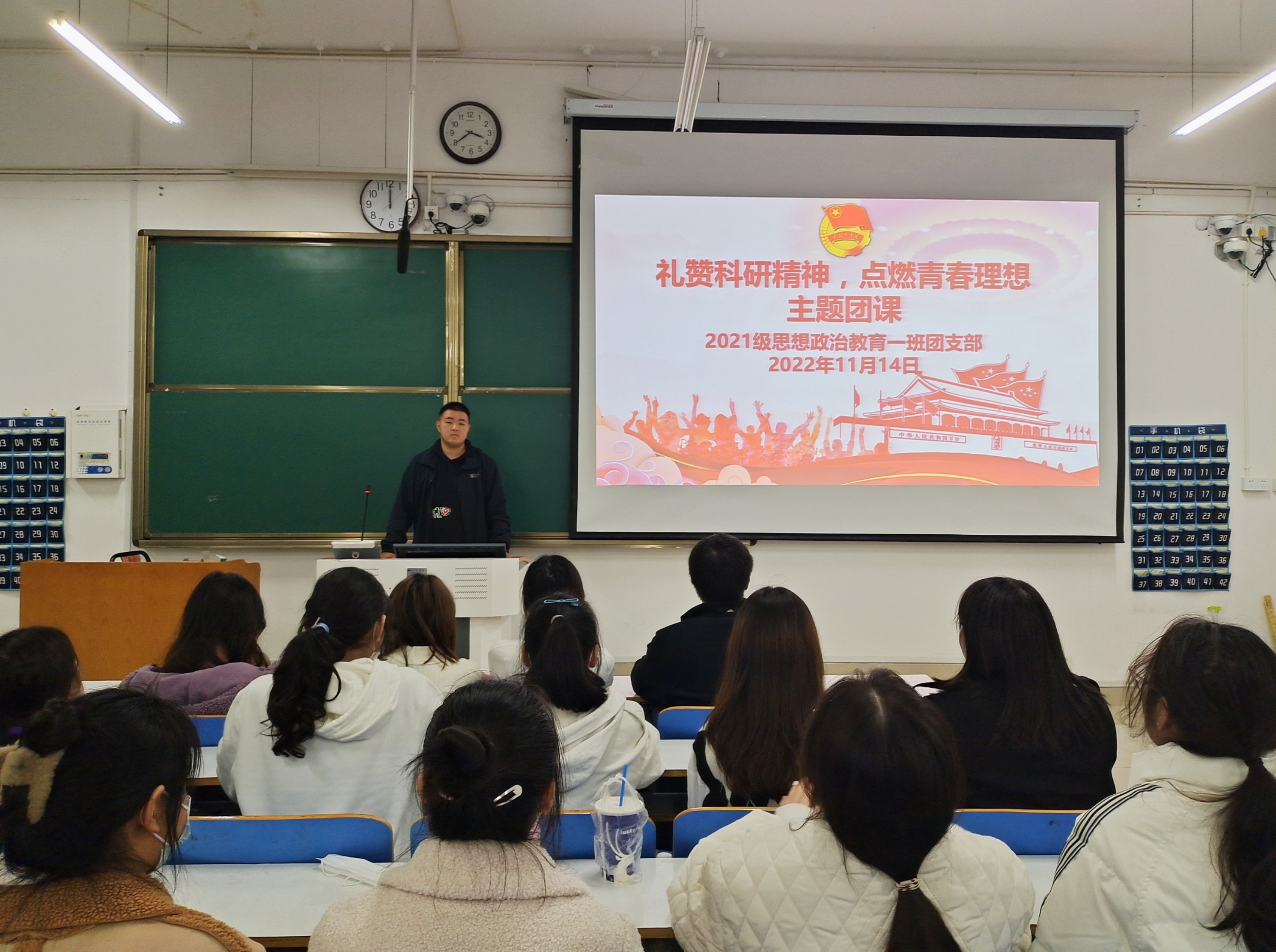 11月14日下午,德赢AC米兰官网2021级思想政治教育一班在社科楼416教室召开“礼赞科研精神,点燃青春理想”主题团课。2021级思想政治教育一班全体团员共同参与本次团课。团课由团支书戴翰林主持。