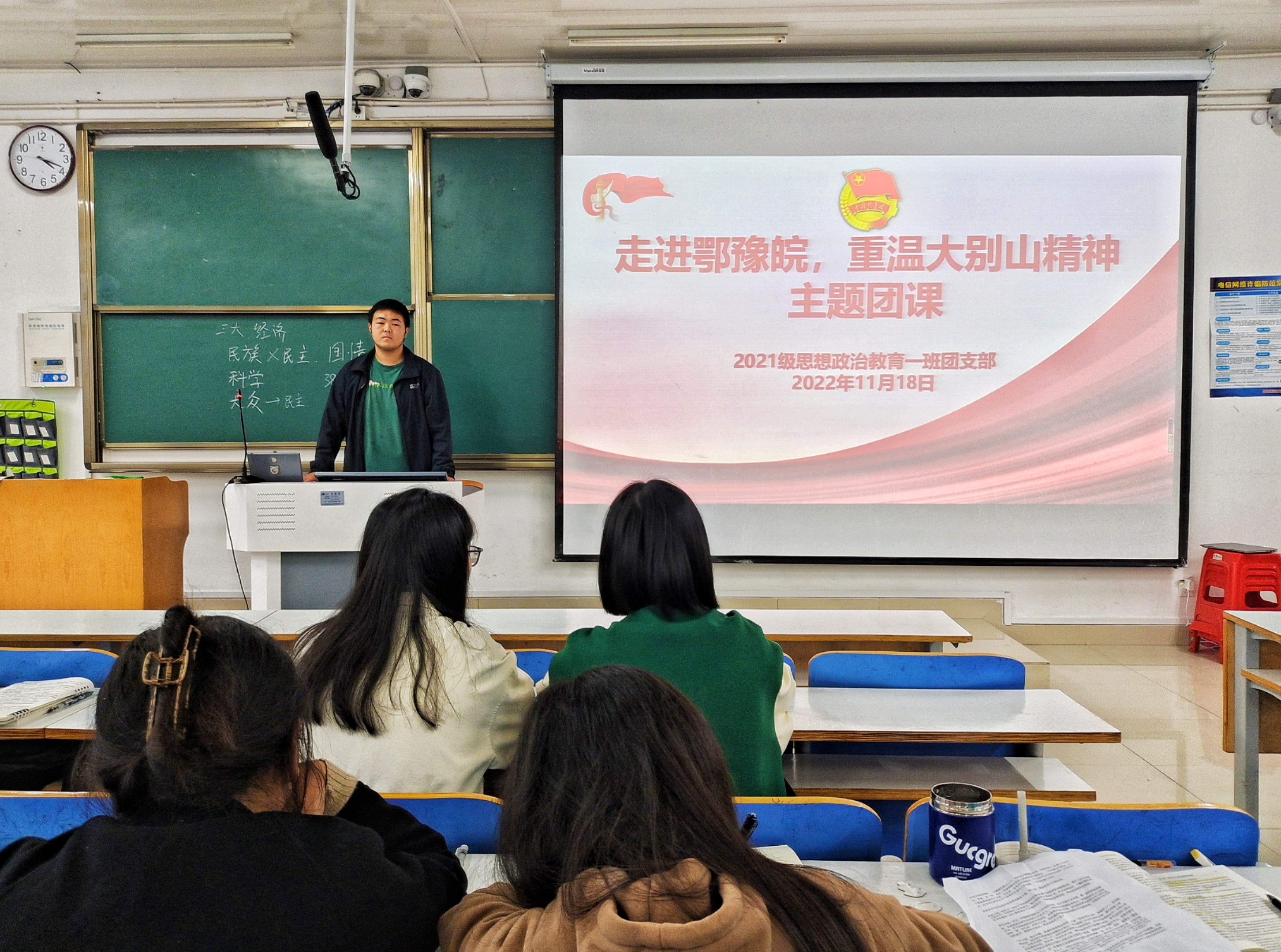 11月18日下午,德赢AC米兰官网2021级思想政治教育一班在社科楼514教室召开“走近鄂豫皖,重温大别山精神”主题团课。2021级思想政治教育一班全体成员共同参与本次团课。团课由团支书戴翰林主持。