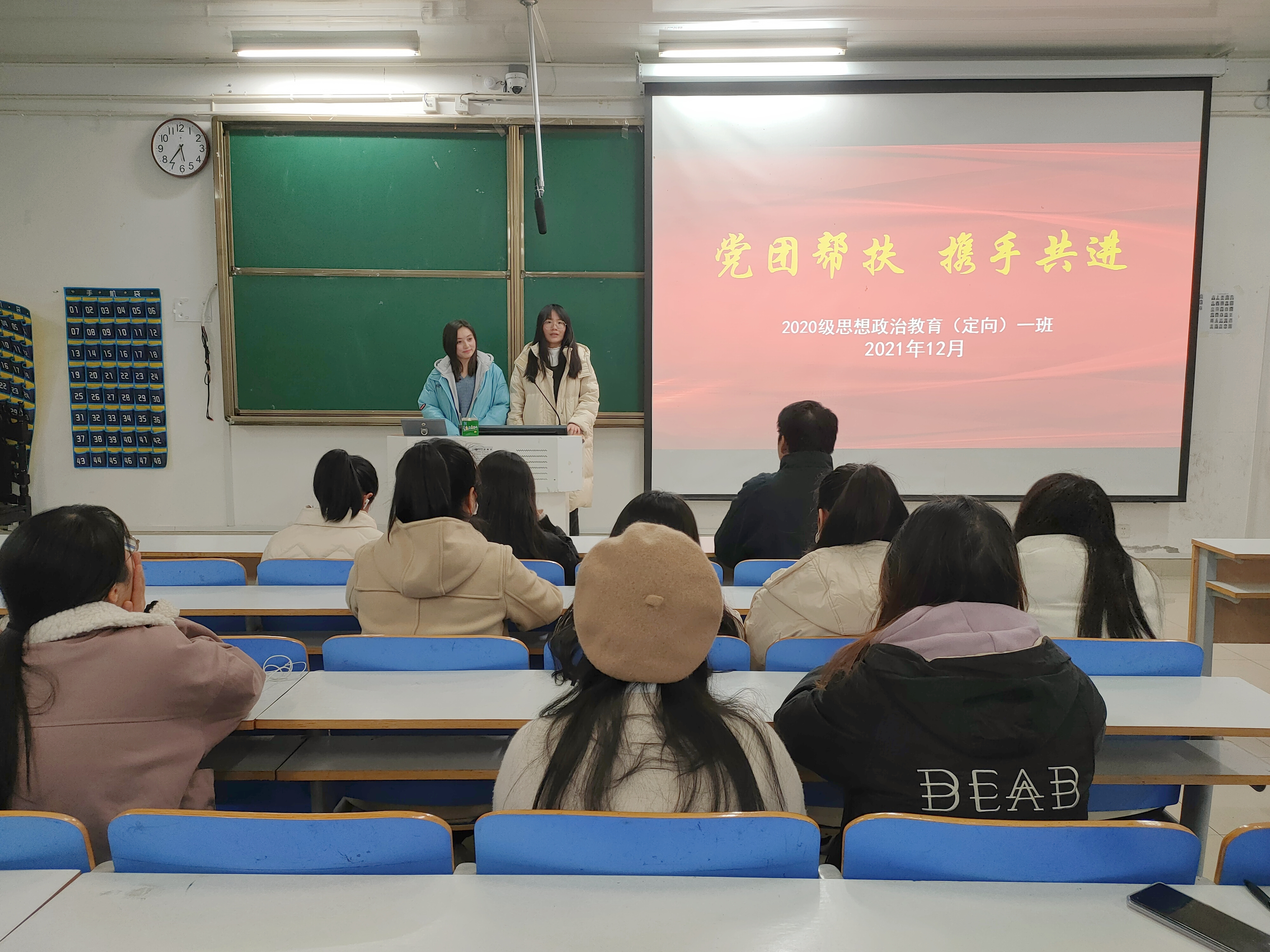 12月10日下午,德赢AC米兰官网2020级思想政治教育定向一班“党团帮扶,携手共进”班会在社科楼516教室举办。德赢AC米兰官网思想政治教育定向一班团支部全体成员参与了本次活动。