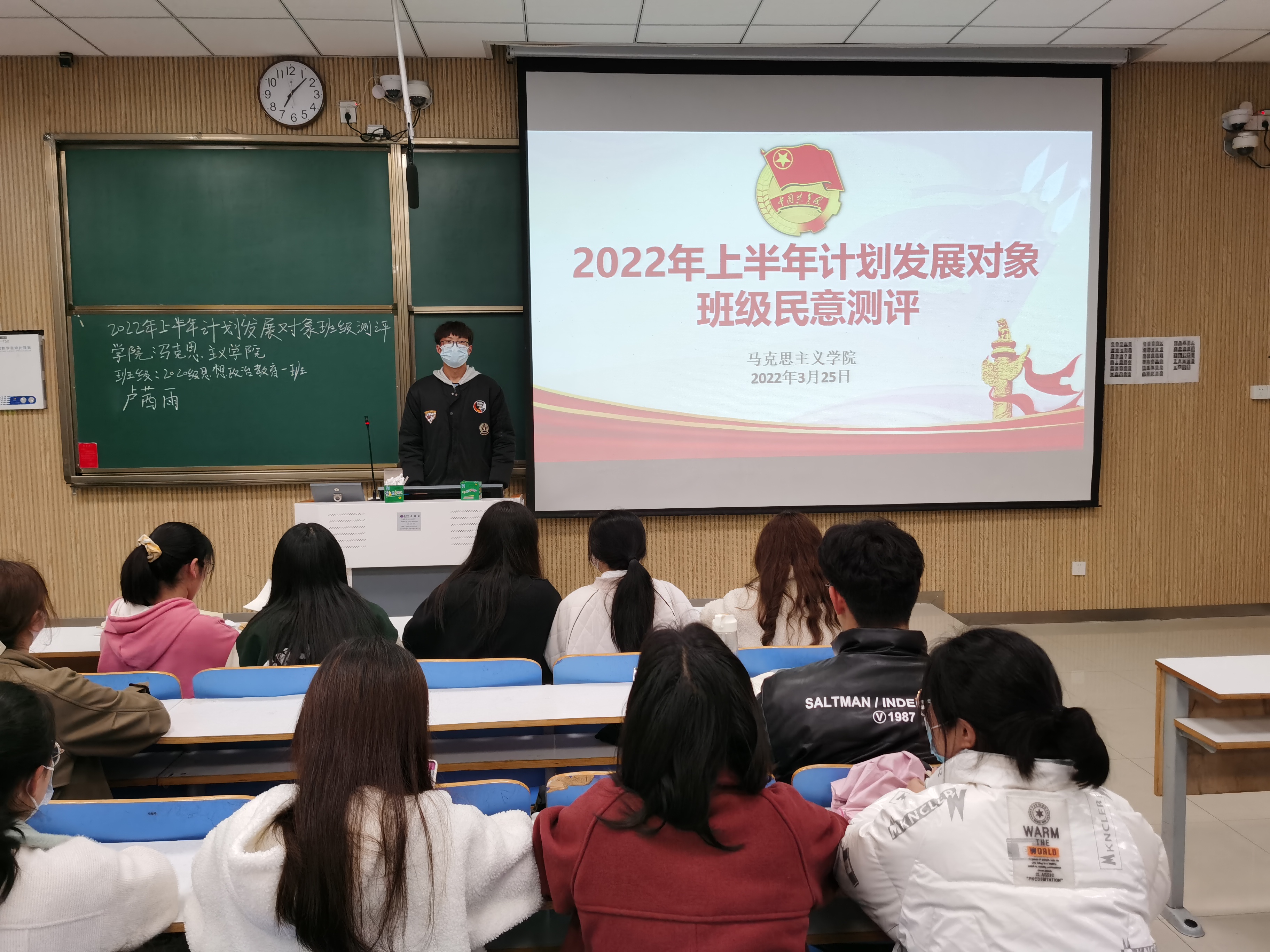 3月25日晚上,德赢AC米兰官网2020级思想政治教育一班在社科楼515教室召开2021年上半年计划发展对象班级民意测评会议。2020级思想政治教育一班全体同学参加了本次会议,会议由团支部副书记白帅豪主持。