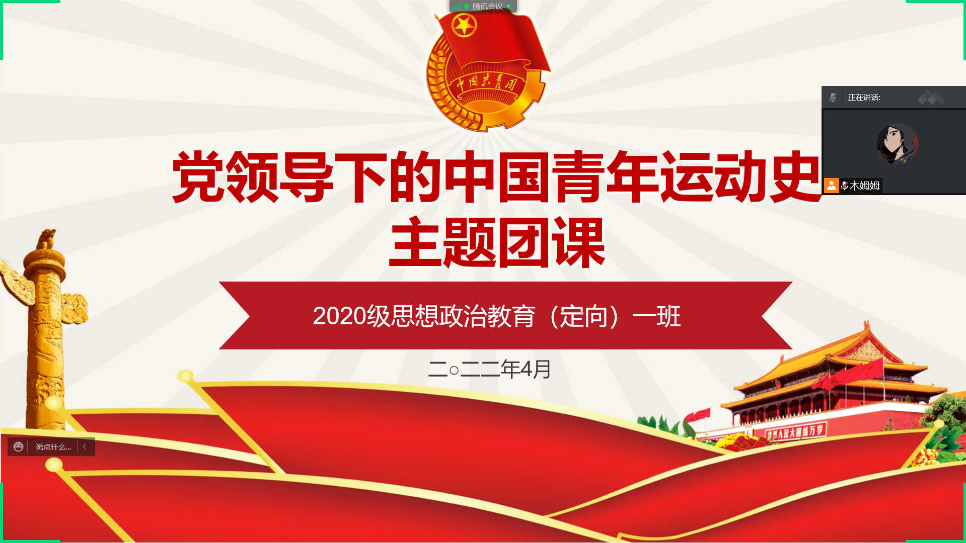 4月26日上午,德赢AC米兰官网2020级思想政治教育定向一班通过腾讯会议的形式召开了党领导下的中国青年运动史主题团课。2020级思想政治教育定向一班全体同学共同参加本次会议。