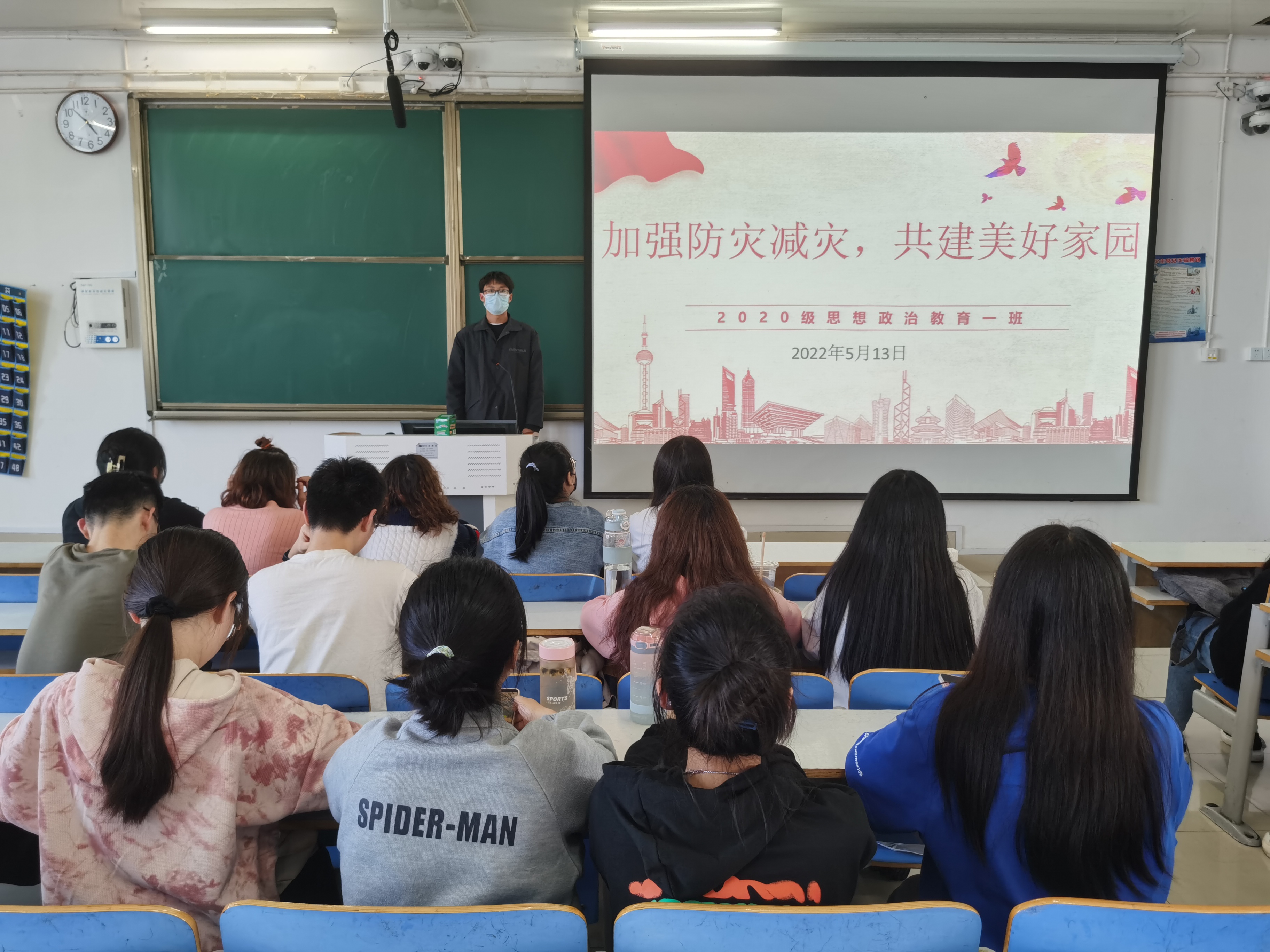 5月13日上午,德赢AC米兰官网2020级思想政治教育一班在社科楼514召开了“加强防灾减灾,共建美好家园”的主题班会。2020级思想政治教育一班全体同学共同参加本次班会,班会由副班长白帅豪主持。