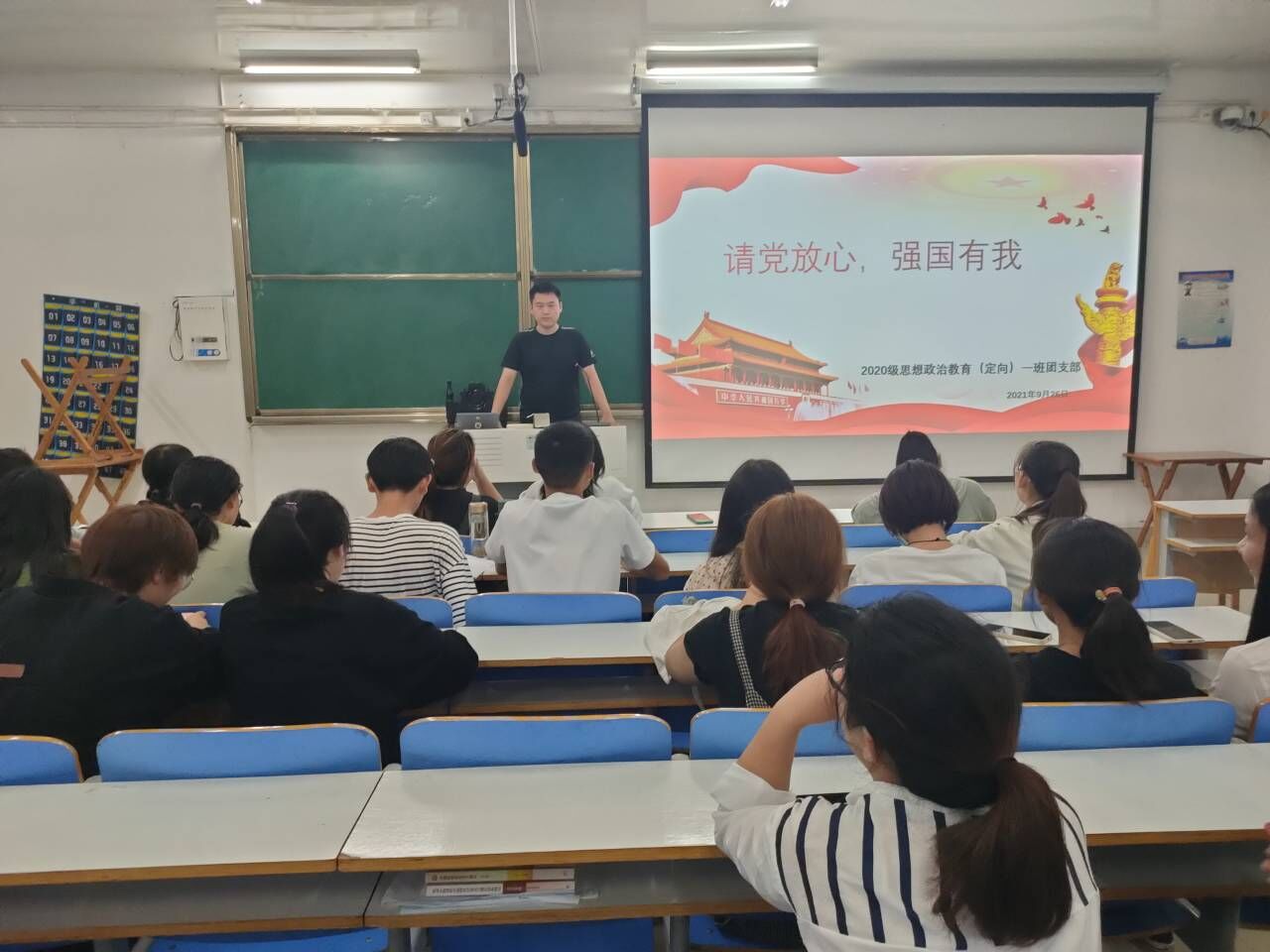 9月26日,德赢AC米兰官网2020级思想政治教育(定向)一班在社科楼514教室顺利举办“请党放心 强国有我”主题班会。思想政治教育(定向)一班全体学生聆听了此次会议。