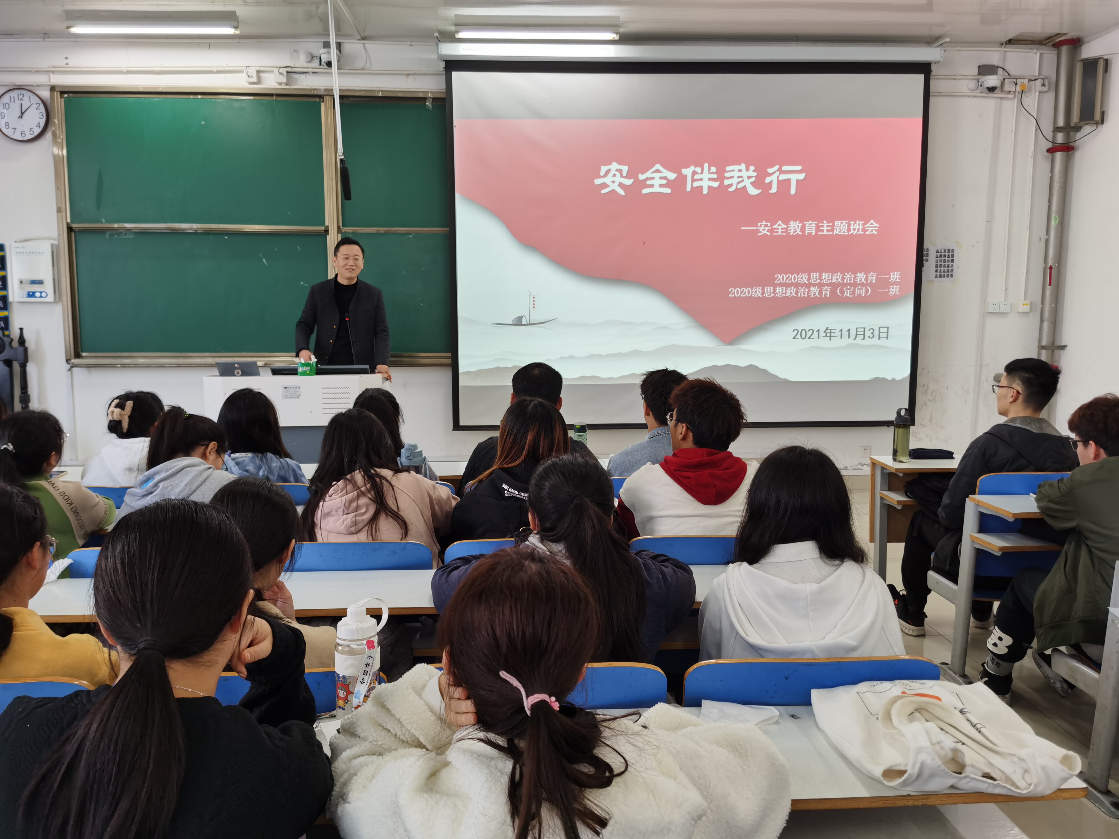11月3日上午,德赢AC米兰官网2020级思想政治教育一班、定向一班在社科楼516教室召开“安全伴我行”安全教育主题班会。辅导员曹栋及2020级思想政治教育一班、定向一班全体同学参加了本次班会。班会由辅导员曹栋主持。