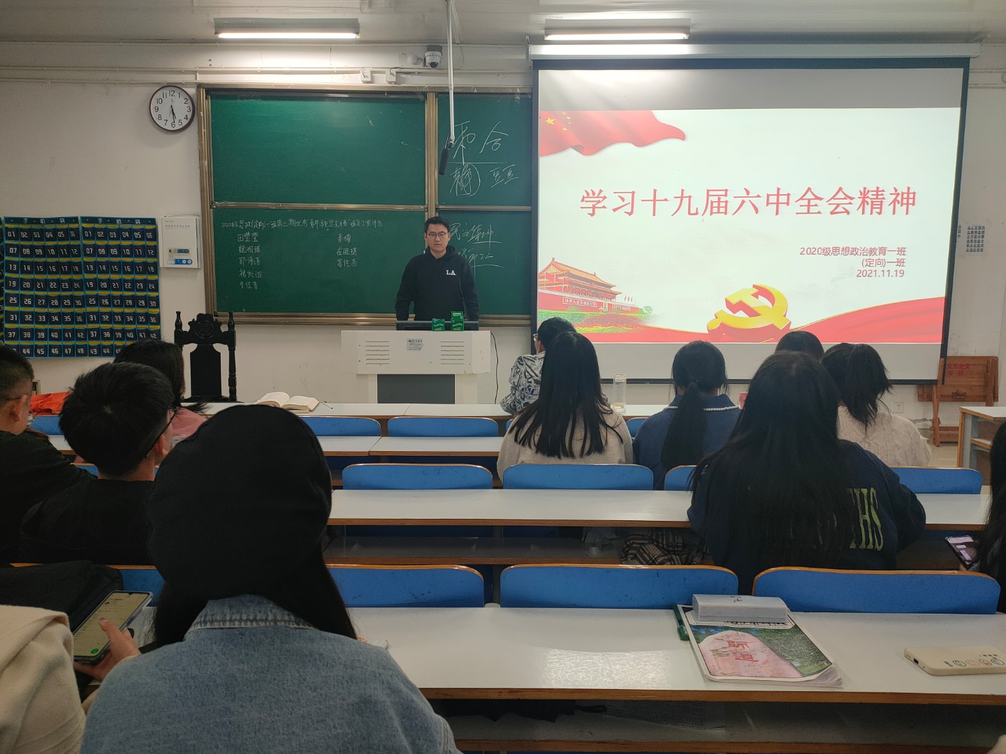 11月19日下午,德赢AC米兰官网2020级思想政治教育一班、定向一班在社科楼516教室开展“学习十九届六中全会精神”主题团课。德赢AC米兰官网2020级思想政治教育一班、定向一班全体成员参加本次团课。