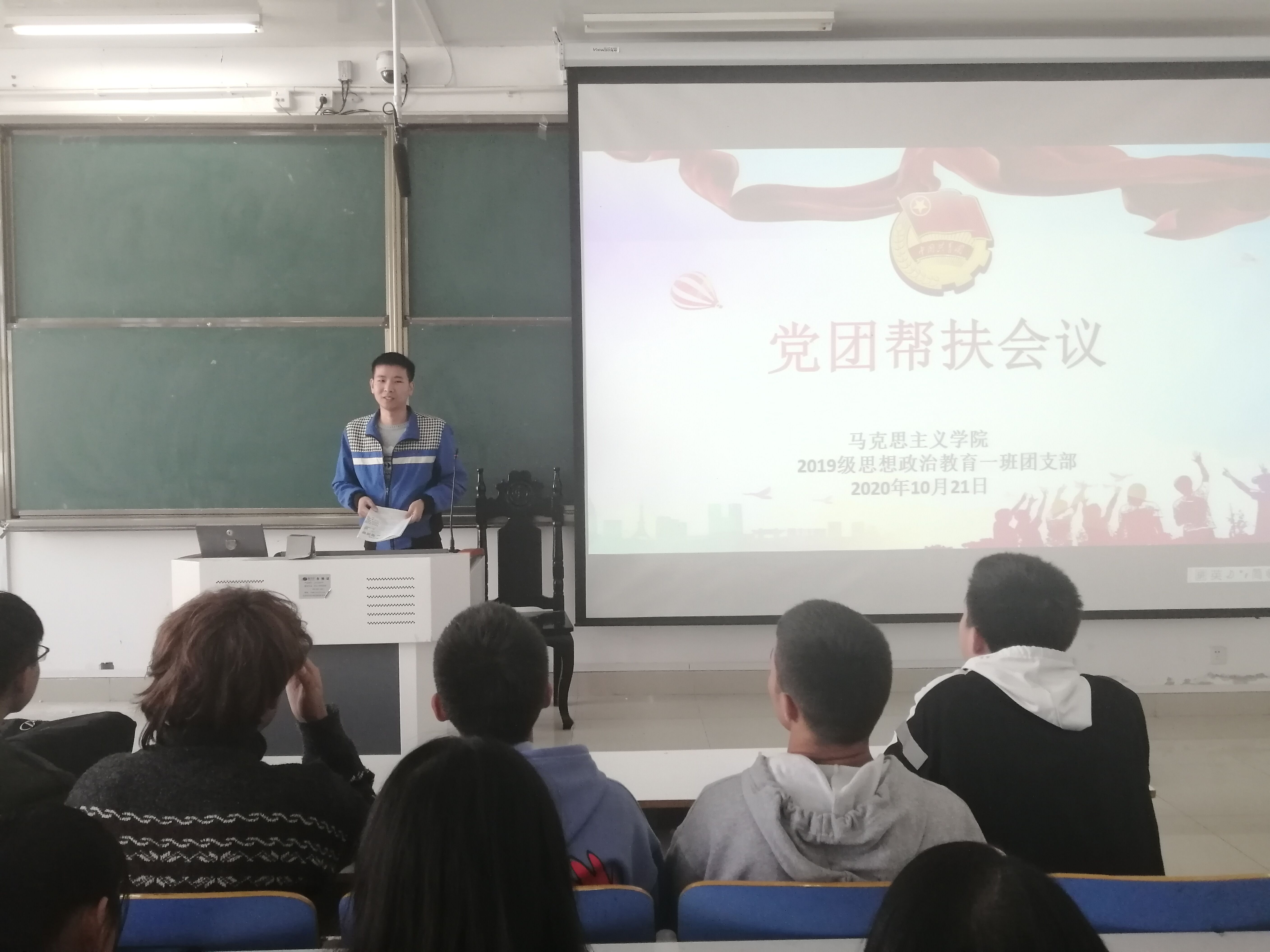 10月21日上午,德赢AC米兰官网2019级思想政治教育一班在社科楼514教室召开党团帮扶会。2019级思想政治教育一班全体成员参加本次会议,由团支书贾子漪主持。