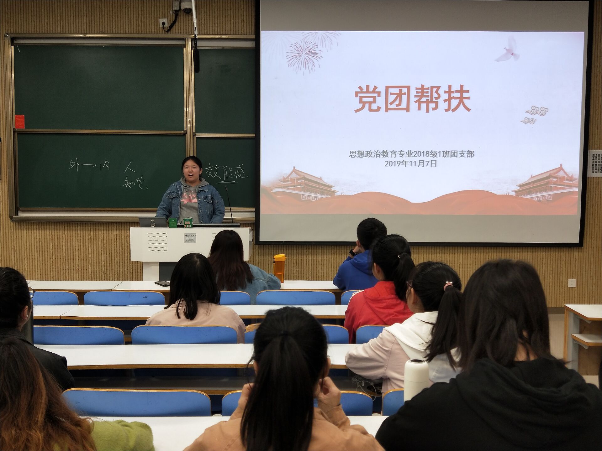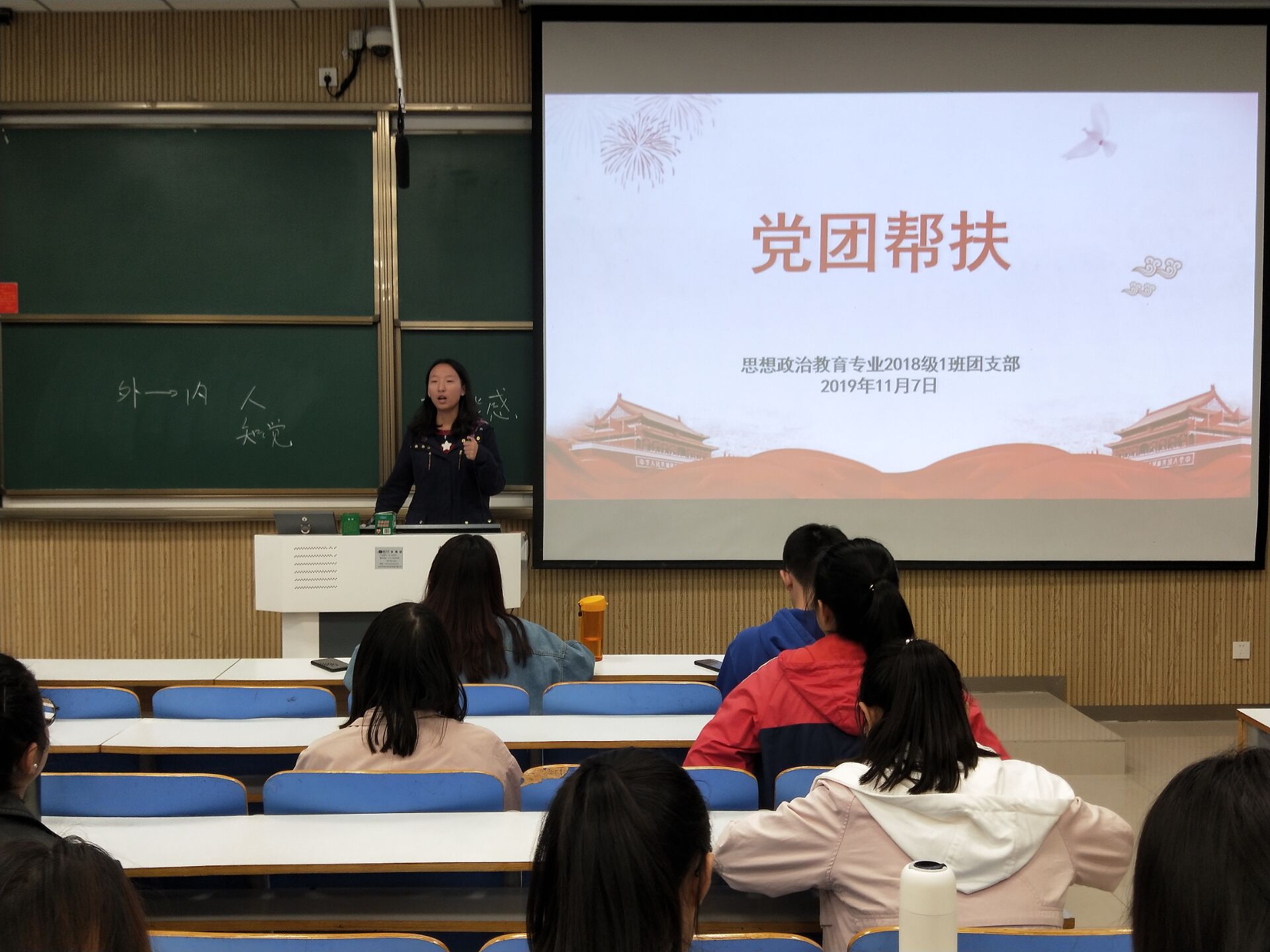 为充分发挥党员干部的先锋模范作用,帮助同学们解决学习和生活问题,11月7日下午,德赢AC米兰官网2018级思想政治教育一班在社科楼515教室顺利开展“党团帮扶”班会。2018级思政一班全体同学共同参加此次会议。会议由团支书靳雨露主持。
