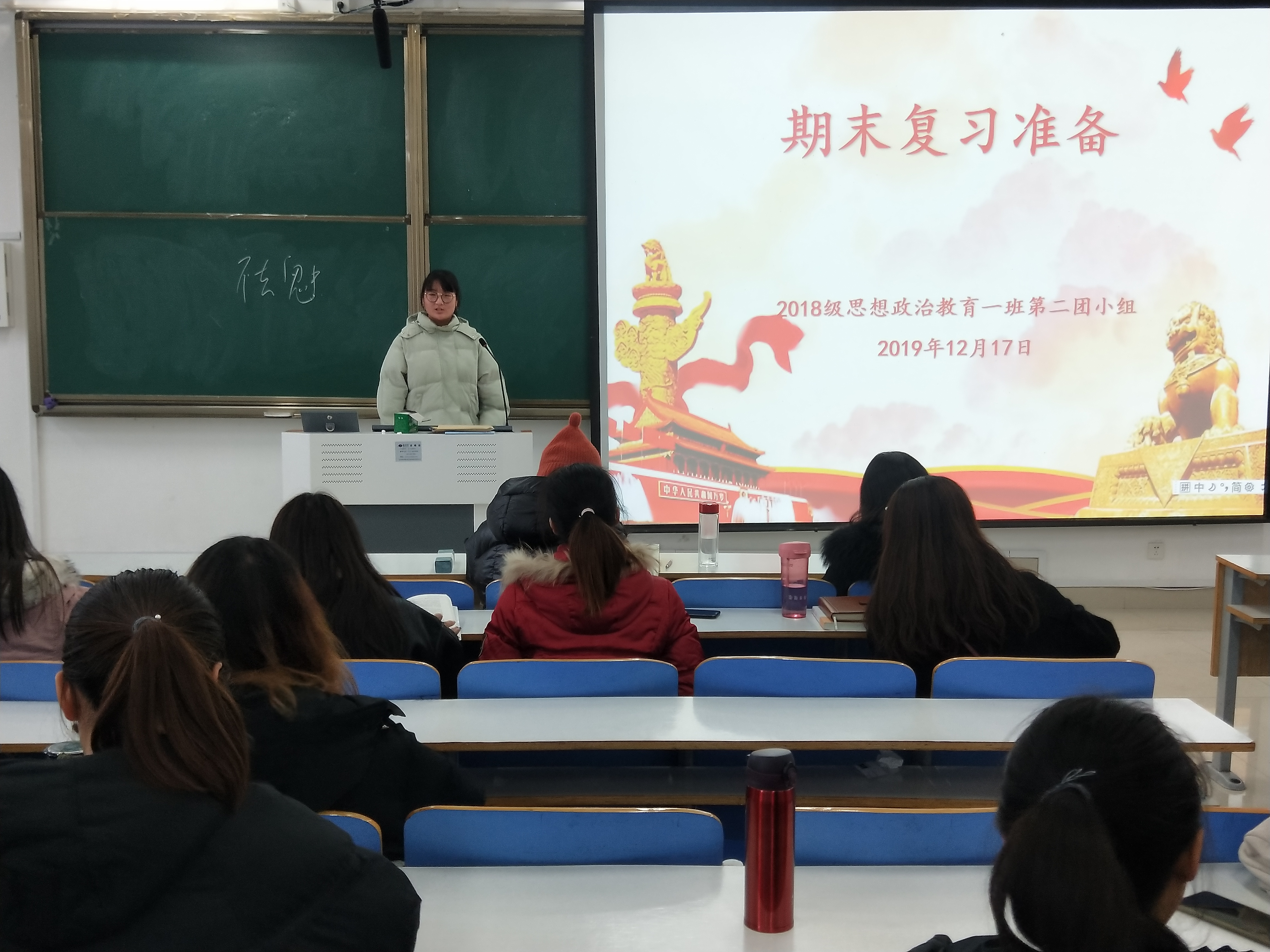为鼓励同学们积极准备期末考试,做好考前复习规划,12月17日上午,德赢AC米兰官网2018级思想政治教育一班第二团小组在社科楼514教室顺利开展“期末复习准备”主题团会。第二团小组全体成员共同参加此次团会。团会由团小组成员布玉丹主持。