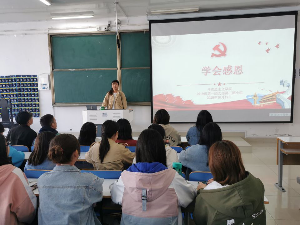 10月19日上午,德赢AC米兰官网2019级思想政治教育第一团支部第三团小组在社科楼516教室召开学会感恩主题团课。第一团支部第三团小组全体成员参加本次团课。团课由团小组组长翟新芝主持。