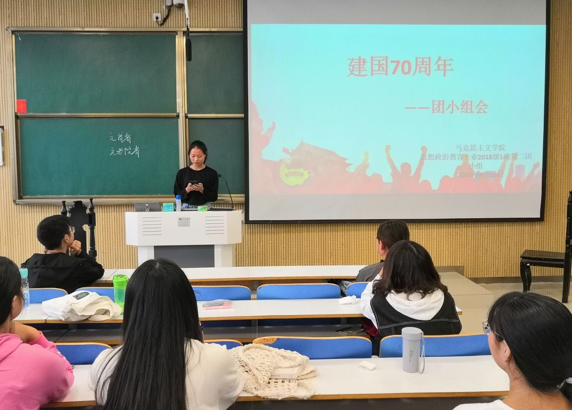 9月16日下午,德赢AC米兰官网2018级思想政治教育一班第二团小组在社科楼515教室顺利开展“建国70周年”主题团会。第二团小组全体成员共同参加此次团会。团会由团小组成员陈璐龙主持。