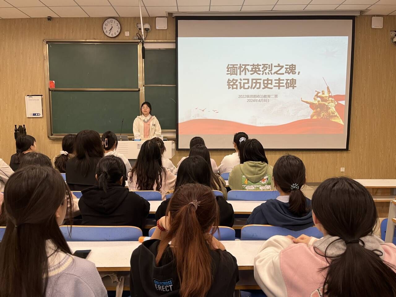 4月8日晚上,德赢AC米兰官网2022级思想政治教育二班在社科楼515教室召开“缅怀英烈之魂,铭记历史丰碑”主题团课。德赢官网2022级思想政治教育二班团支部全体成员共同参与此次团课。团课由团支部副书记冯伟珈主持。