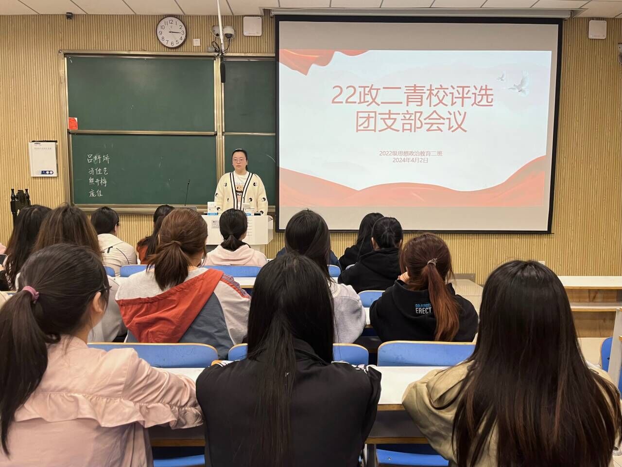 4月2日下午,德赢AC米兰官网2022级思想政治教育二班在社科楼515教室召开青校评选团支部会议。德赢官网2022级思想政治教育二班全体成员共同参与此次评选。会议由团支书李佳音主持。