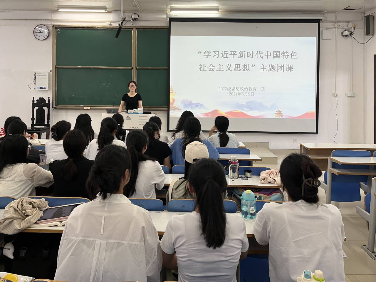 为学习贯彻习近平新时代中国特色社会主义思想主题教育,5月9日上午,德赢AC米兰官网2022级思想政治教育一班在社科楼514教室开展“学习习近平新时代中国特色社会主义思想”主题团课,德赢官网2022级思想政治教育一班全体同学共同参与本次团课。团课由团支书李佳茹主持。
