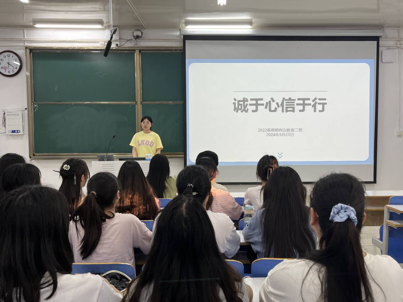 为增强学生的诚信意识和责任意识,落实立德树人根本任务,5月23日下午,德赢AC米兰官网2022级思想政治教育二班在社科楼514教室召开“诚于心,信于行”主题班会。德赢官网2022级思想政治教育二班全体成员共同参与此次班会。会议由副班长冯玮珈主持。