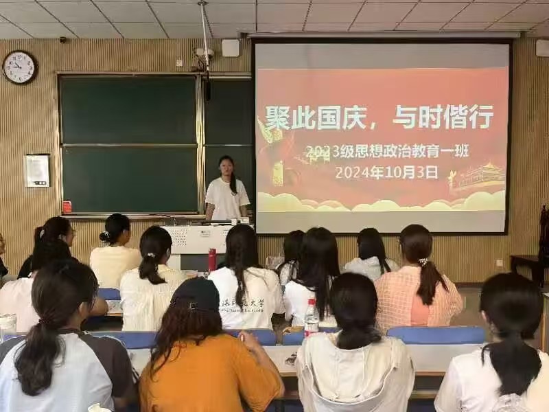 为深入学习贯彻习近平新时代中国特色社会主义思想,激发我班学子的爱国情怀和使命担当,10月3日上午,德赢AC米兰官网2023级思想政治教育一班在社科楼515教室召开“聚此国庆,与时偕行”主题团课。2023级思想政治教育一班全体同学参与本次团课,团课由团支书张卓主持。