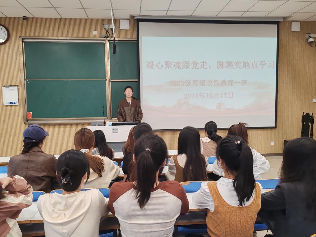 为不断增强我班学子对于党的创新理论的政治认同、思想认同、理论认同、情感认同,提高其理论素养和能力本领,10月17日上午,德赢AC米兰官网2023级思想政治教育一班在社科楼515教室召开“凝心聚魄跟党走,脚踏实地真学习”主题团课。2023级思想政治教育一班全体同学参与本次团课,团课由团支书张卓主持。