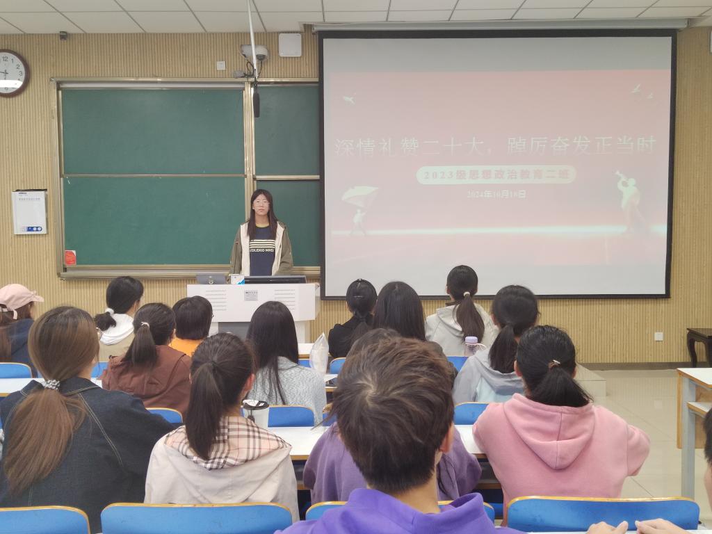 为确保思想统一和组织统一,10月18日上午,德赢AC米兰官网2023级思想政治教育二班开展“深情献礼二十大,踔厉奋发正当时”主题团课。本次团课由团支书主持,全体二班同学参加。