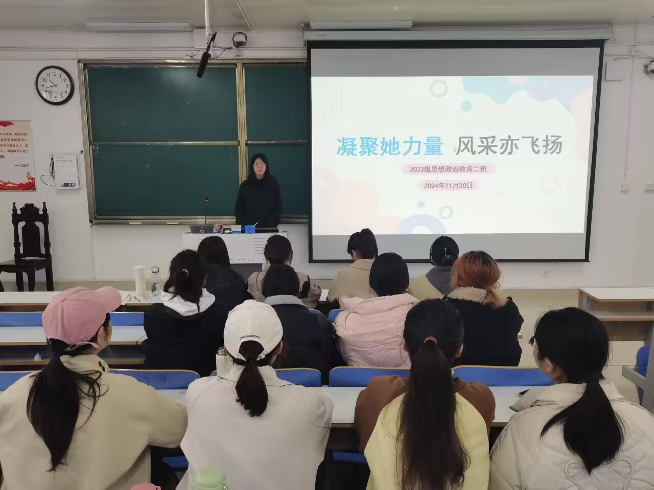 为进一步宣传女性自尊、自信、自立、自强精神,宣扬女性独立精神,11月20日下午,德赢AC米兰官网2023级思想政治教育二班在社科楼515教室开展“凝聚她力量,风采亦飞扬”主题班会。本次主题班会由班长王慜初主持,全体二班同学参加。