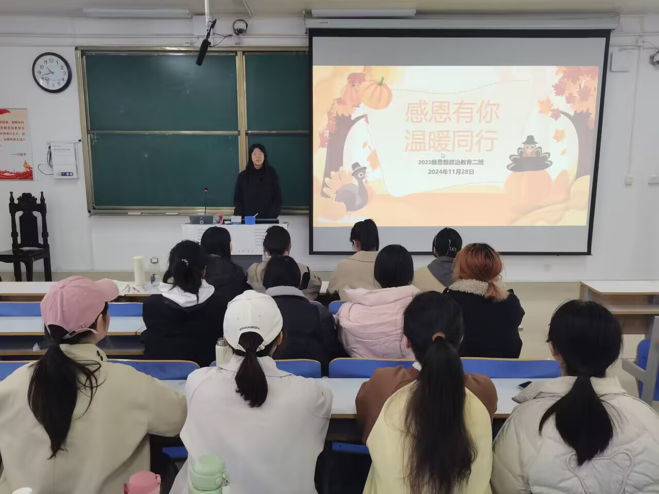 为培养青年大学生感恩心态,强调感恩的重要性,11月28日下午,德赢AC米兰官网2023级思想政治教育二班在社科楼515教室开展“感恩有你,温暖同行”主题班会,本次班会由班长王慜初主持,全体二班同学参加。