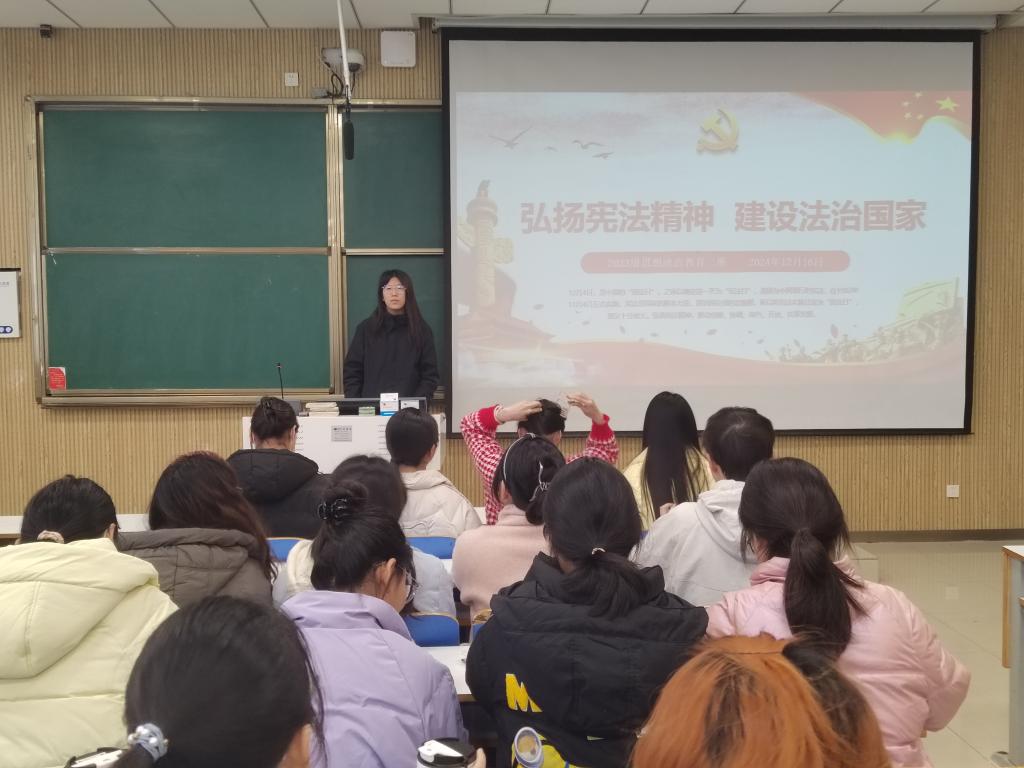 为进一步在班级内弘扬宪法精神,宣传法治意识,12月16日上午,德赢AC米兰官网2023级思想政治教育二班在社科楼515教室开展“弘扬宪法精神,建设法治国家”主题团课,本次团课由团支书王慜初主持,全体二班同学参加。