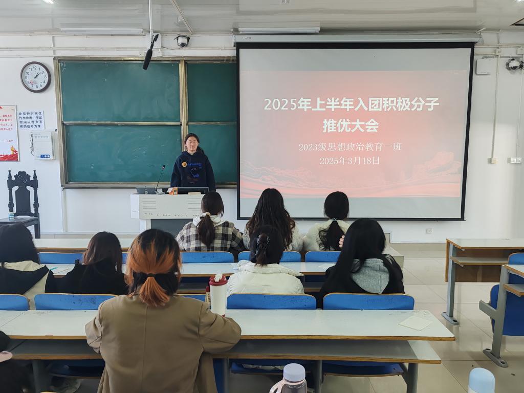 为进一步加强团组织建设,增强团支部的凝聚力,积极开展团青工作,3月18日下午,德赢AC米兰官网2023级思想政治教育一班在社科楼515教室召开入团积极分子推优大会。德赢官网2023级思想政治教育一班全体团员共同参与本次班会,班会由团支书张卓主持。