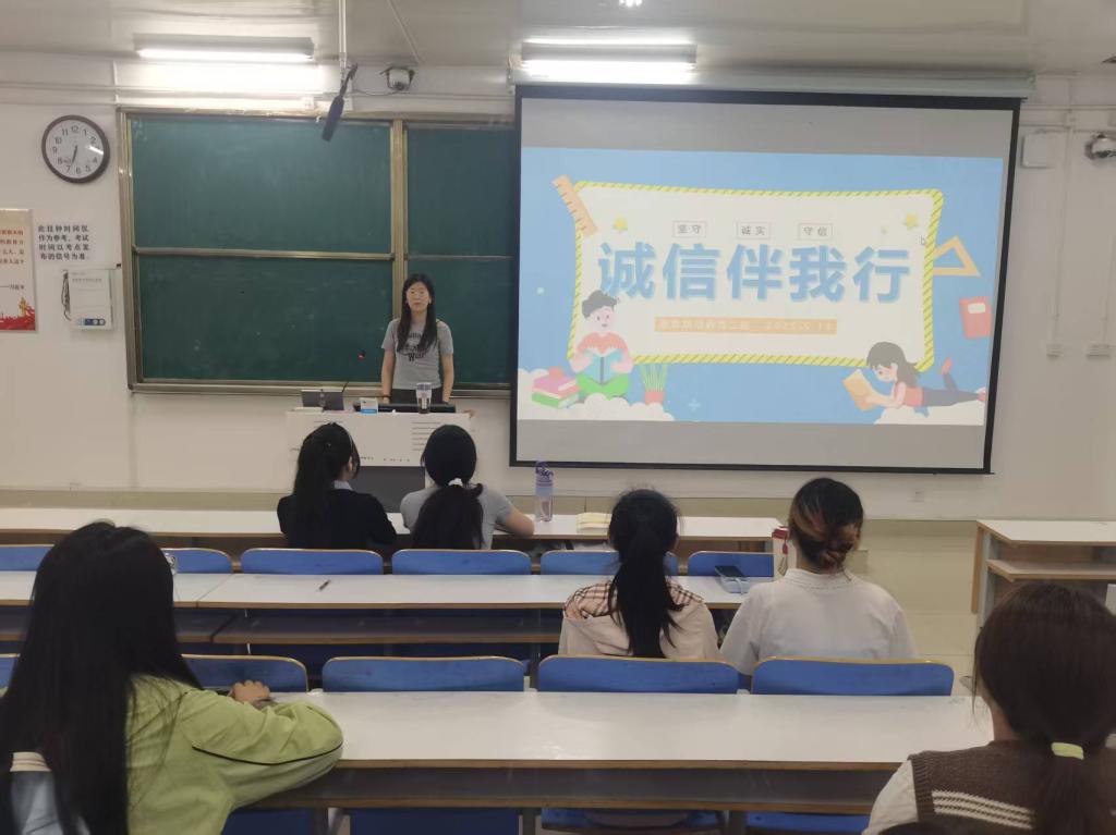为进一步培养同学们的诚信意识,改善校园风尚,5月13日下午,德赢AC米兰官网2023级思想政治教育二班在社科楼515教室开展“诚信伴我行”主题班会。本次班会由班长王慜初主持,全体二班同学参加。