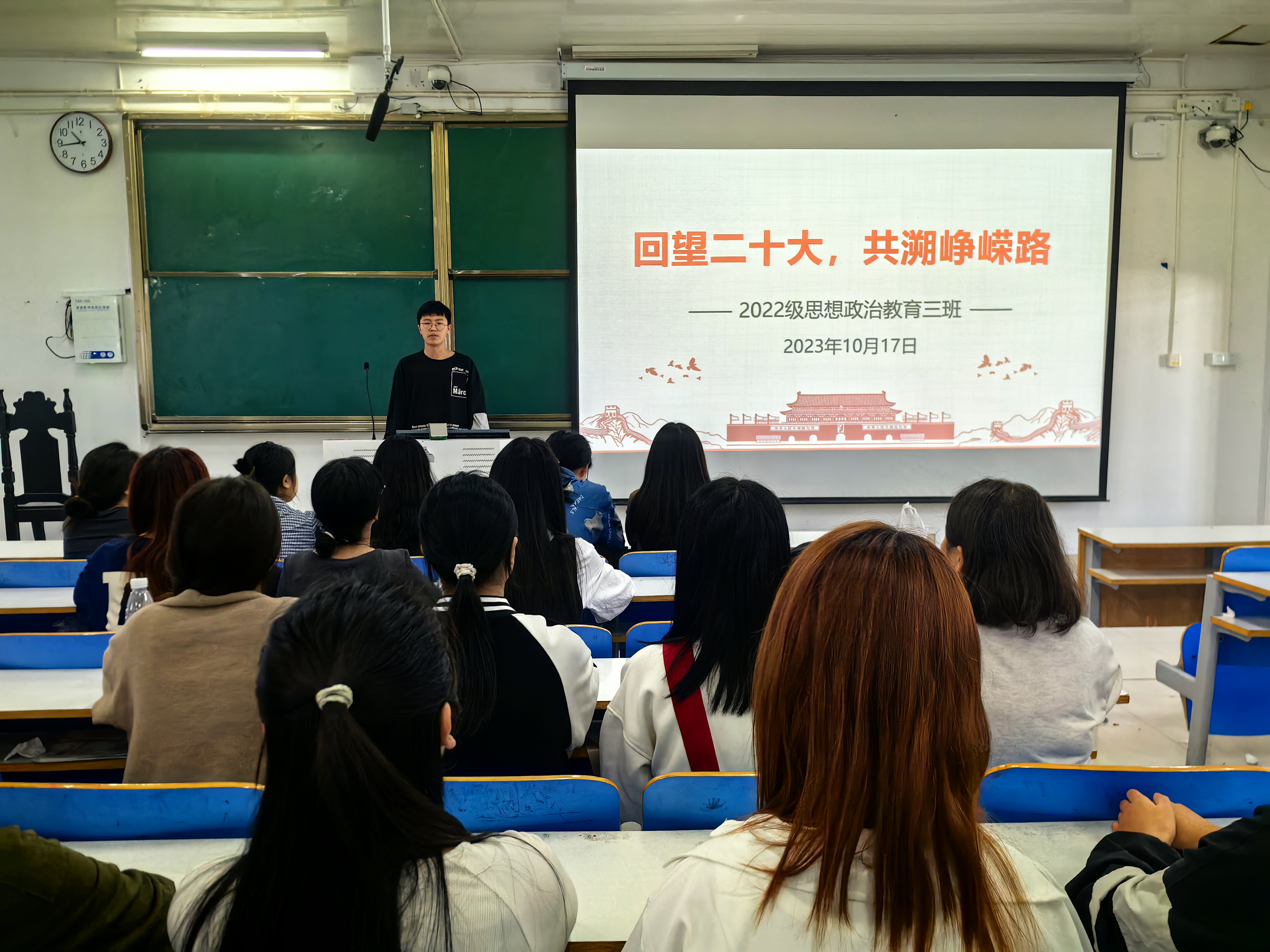 10月17日下午,德赢AC米兰官网2022级思想政治教育三班在社科楼515教室召开“回望二十大,共溯峥嵘路”主题团课。德赢官网2022级思想政治教育三班全体成员共同参加本次团课,团课由团支书余浩洋主持。