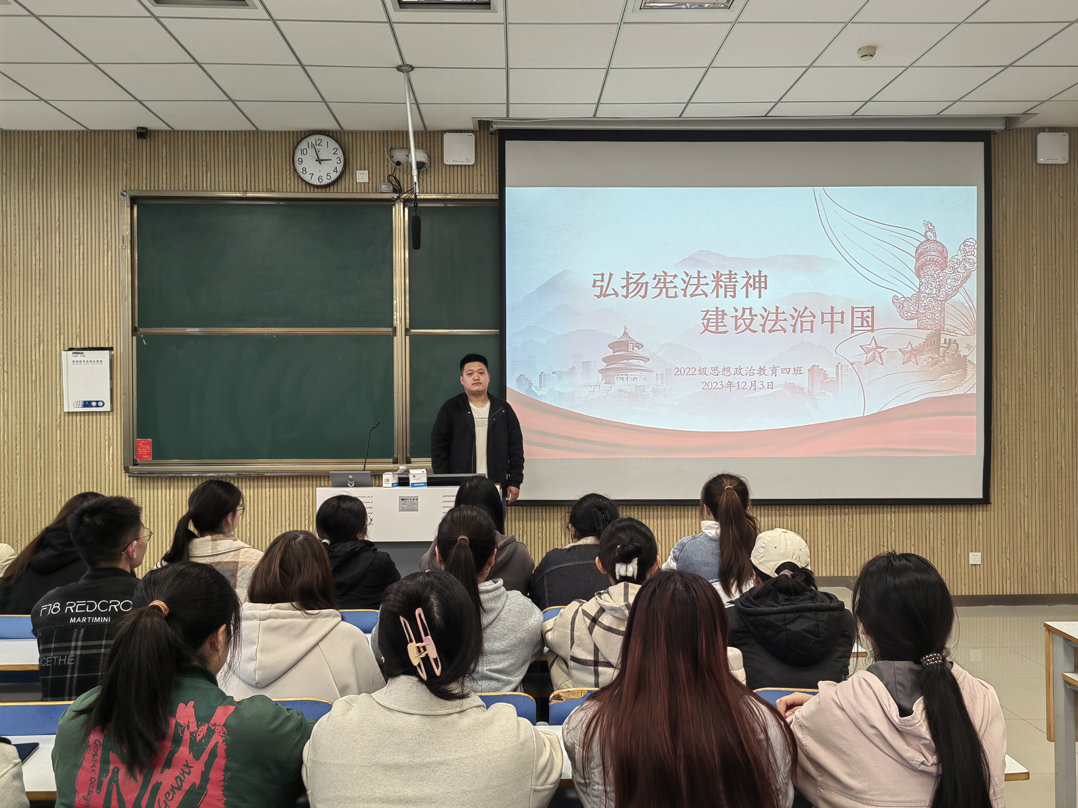 12月3日上午,德赢AC米兰官网2022级思想政治教育四班在社科楼515教室召开“弘扬宪法精神,建设法治中国”主题班会。德赢官网2022级思想政治教育四班全体同学参与本次班会。本次团课由副班长宋奕铭主持。