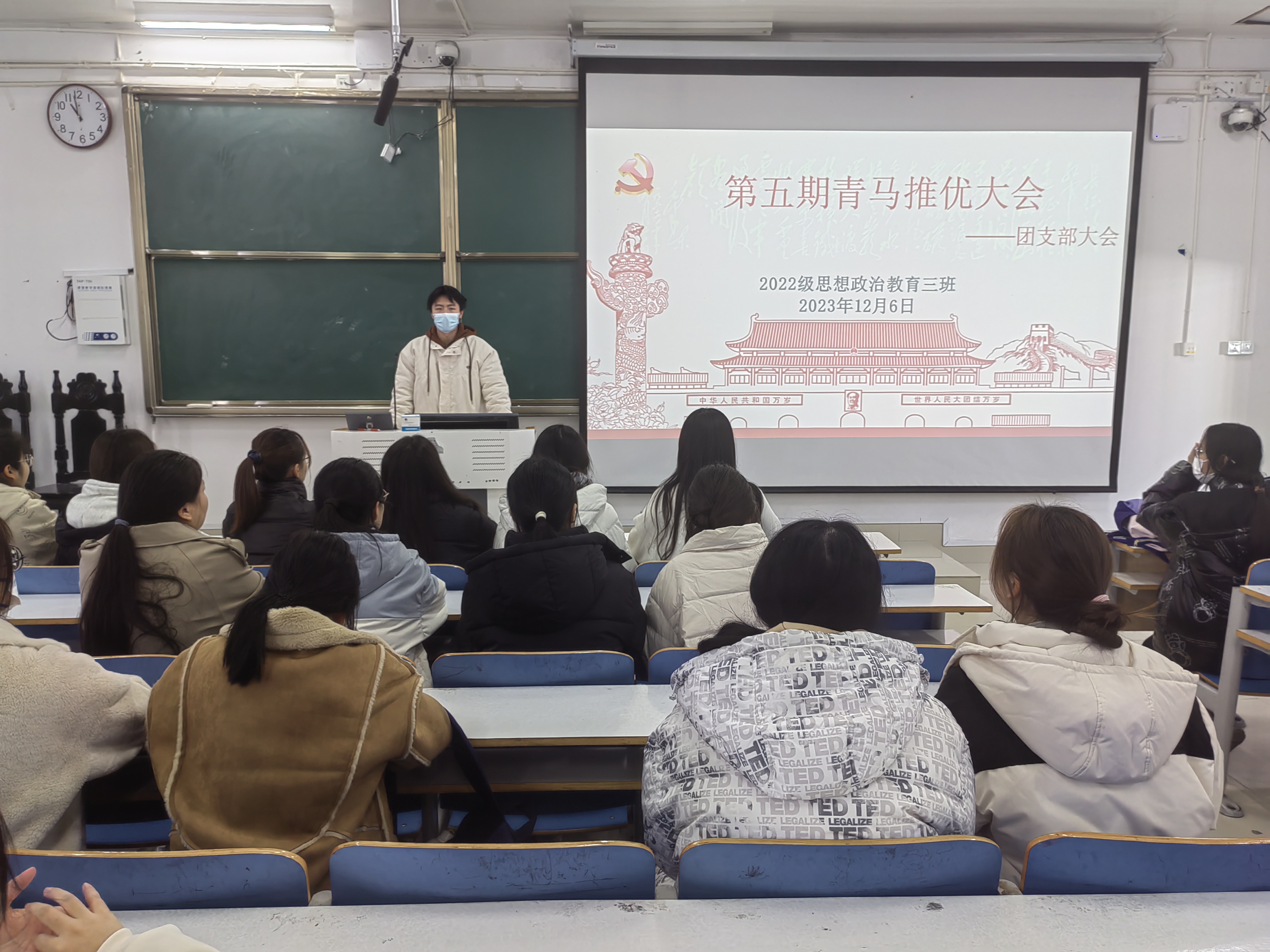 12月6日上午,德赢AC米兰官网2022级思想政治教育三班在514教室开展第五期青马推优大会。德赢官网2022级思想政治教育三班全体团员共同参与此次推优大会。大会由团支书余浩洋主持。