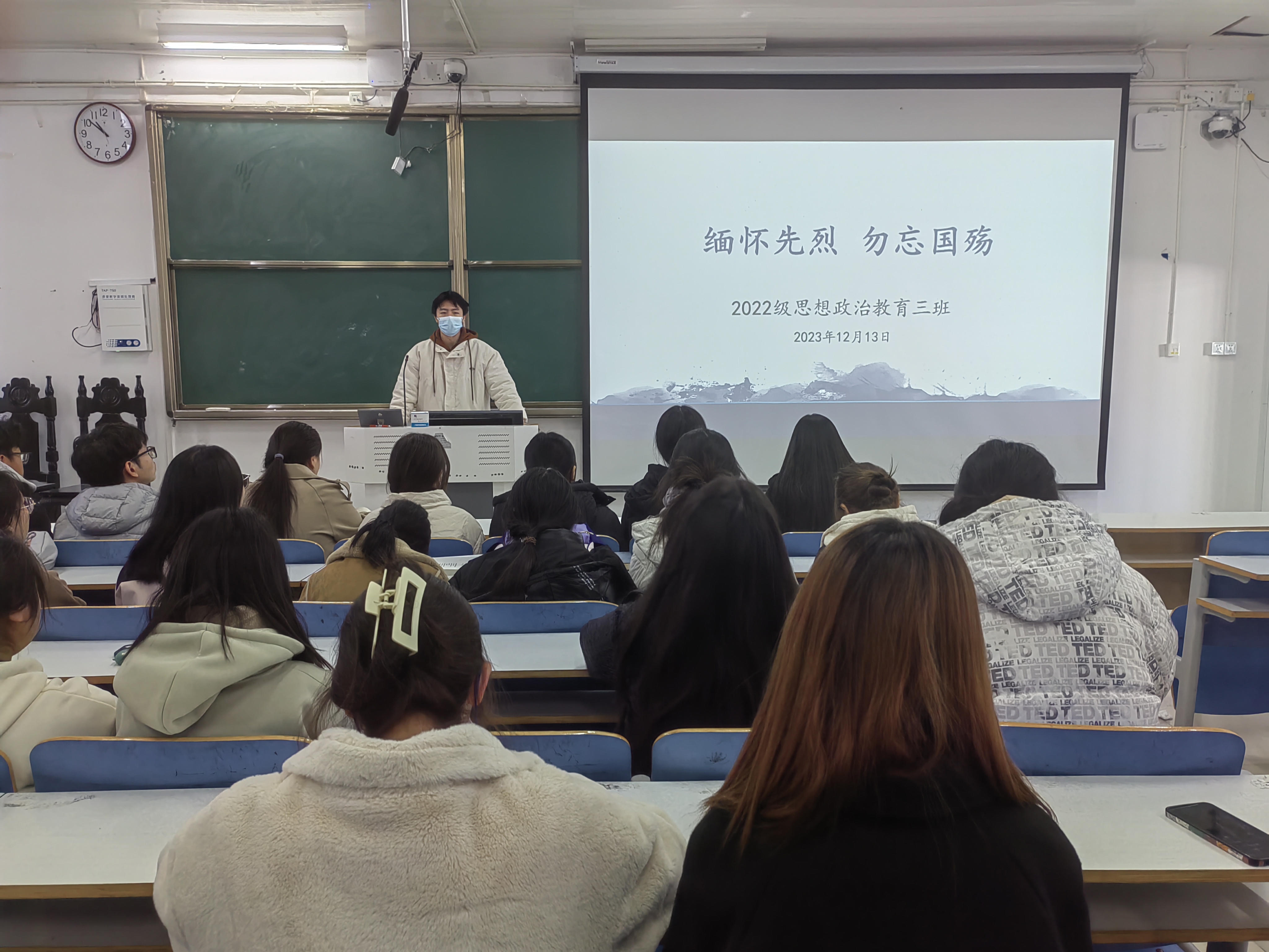 继承先烈遗志,砥砺奋斗青春。12月13日上午,德赢AC米兰官网2022级思想政治教育三班在社科楼514教室召开“缅怀先烈,勿忘国殇”主题团课。德赢官网2022级思想政治教育三班全体成员共同参与本次团课。团课由团支书余浩洋主持。