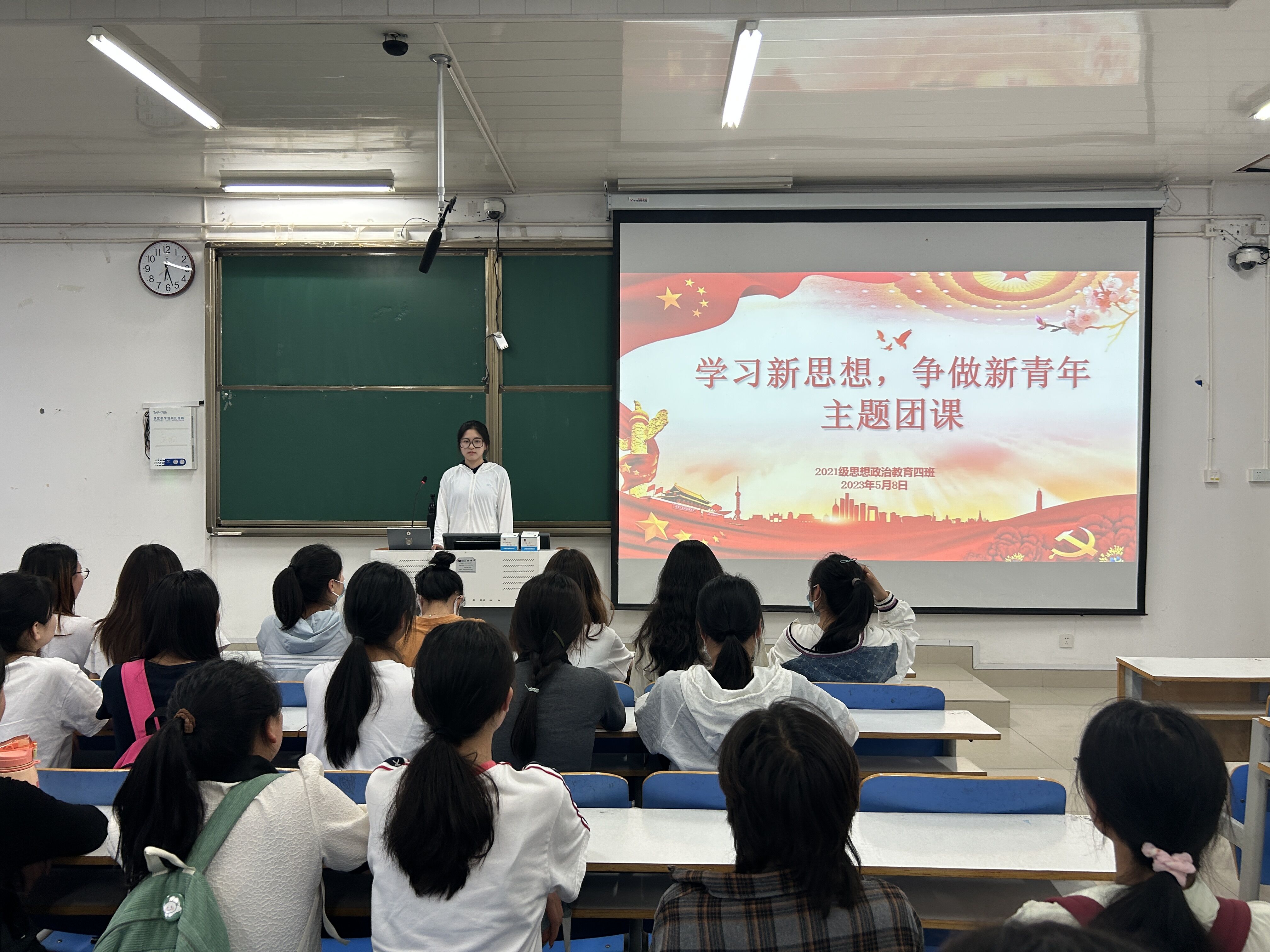 5月8日下午,德赢AC米兰官网2021级思想政治教育四班在社科楼514教室开展“学习新思想,争做新青年”主题团课。2021级思想政治教育四班全体团员参加本次团课。团课由团支书刘珂含主持。