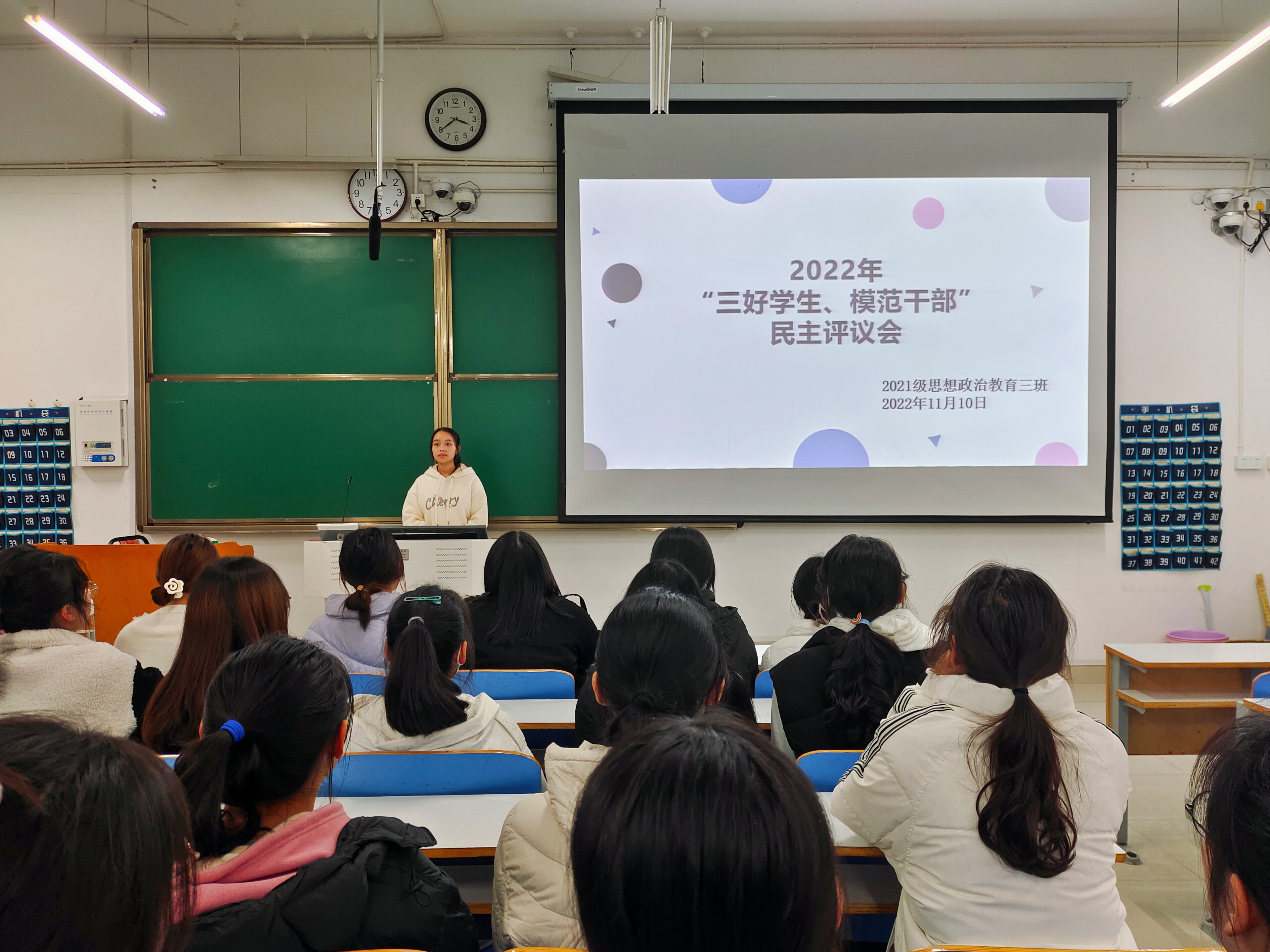 11月10日下午,德赢AC米兰官网2021级思想政治教育三班在社科楼514召开2022年“三好学生、模范干部”民主评议会。德赢AC米兰官网2021级思想政治教育三班全体成员参与此次会议。会议由团支书王岚霄主持,王岚霄任检票员,陈笑宇任记录员。