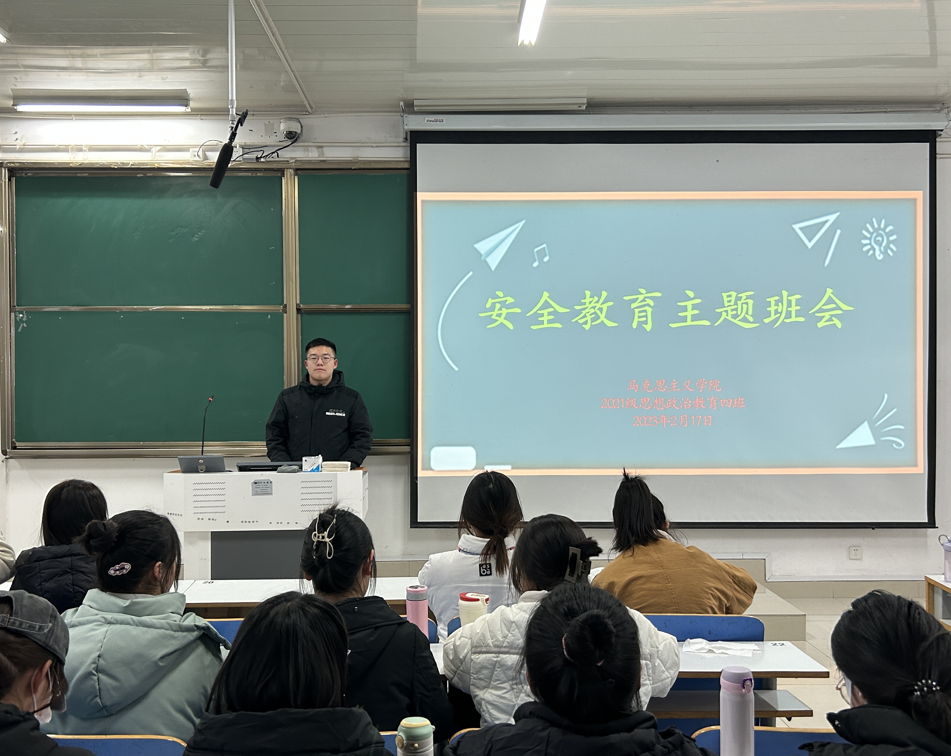 2月17日下午,德赢AC米兰官网2021级思想政治教育四班在社科楼514教室开展安全教育主题班会。2021级思想政治教育四班全体同学共同参会。班会由副班长常康哲主持。