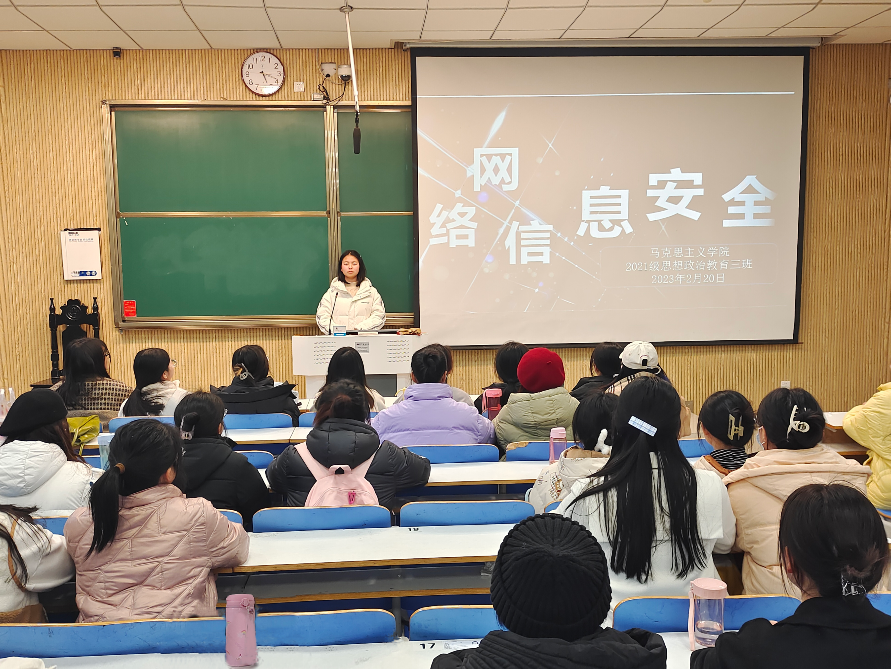 2月20日下午,德赢AC米兰官网2021级思想政治教育三班在社科楼515召开“网络信息安全”主题班会。德赢AC米兰官网2021级思想政治教育三班全体成员参与此次会议。会议由副班长易从漫主持。