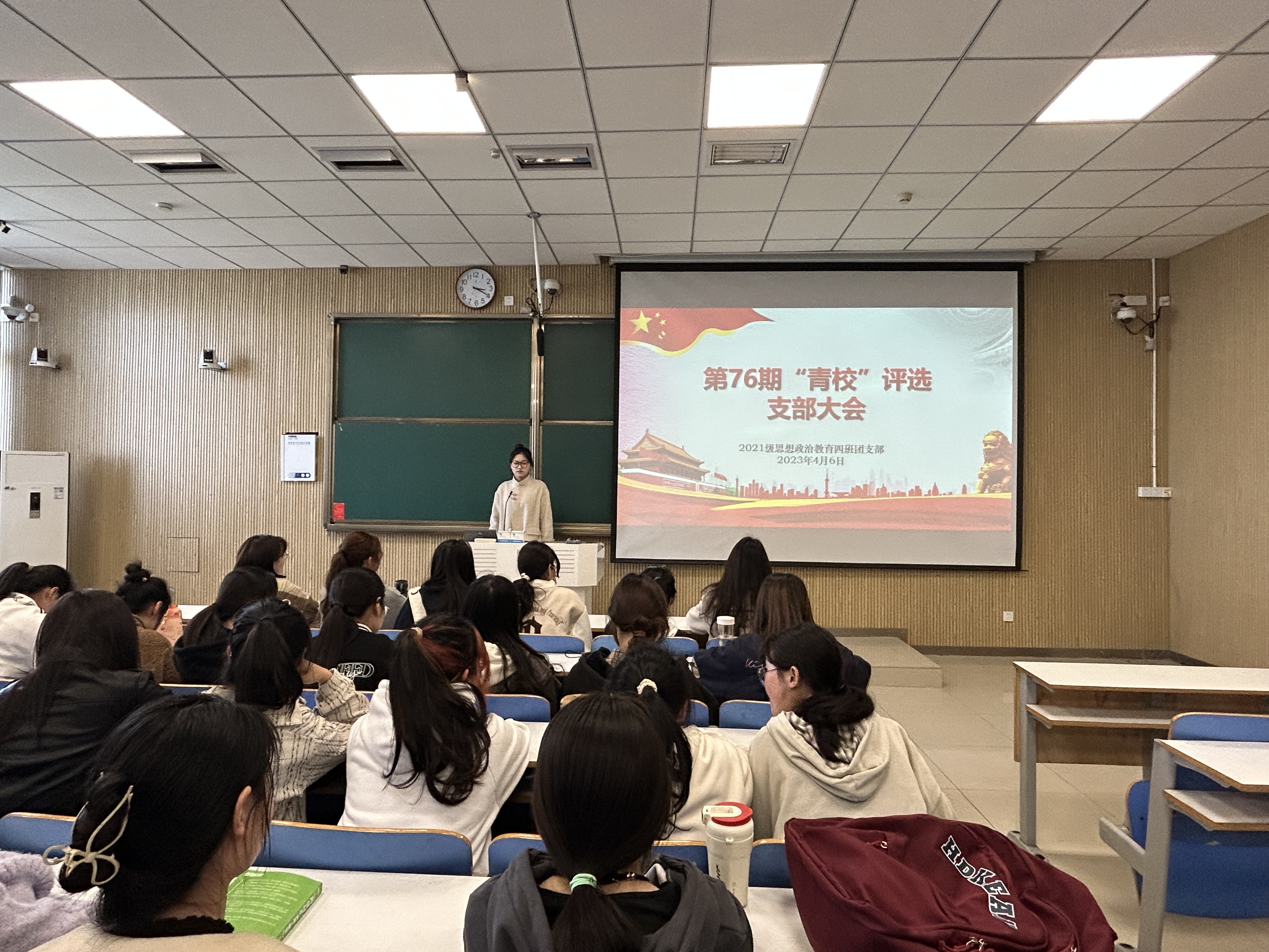 4月6日下午,德赢AC米兰官网2021级思想政治教育四班在社科楼514教室开展第76期“青校”评选团支部大会。德赢AC米兰官网2021级思想政治教育四班全体团员共同参与本次会议。会议由团支书刘珂含主持。