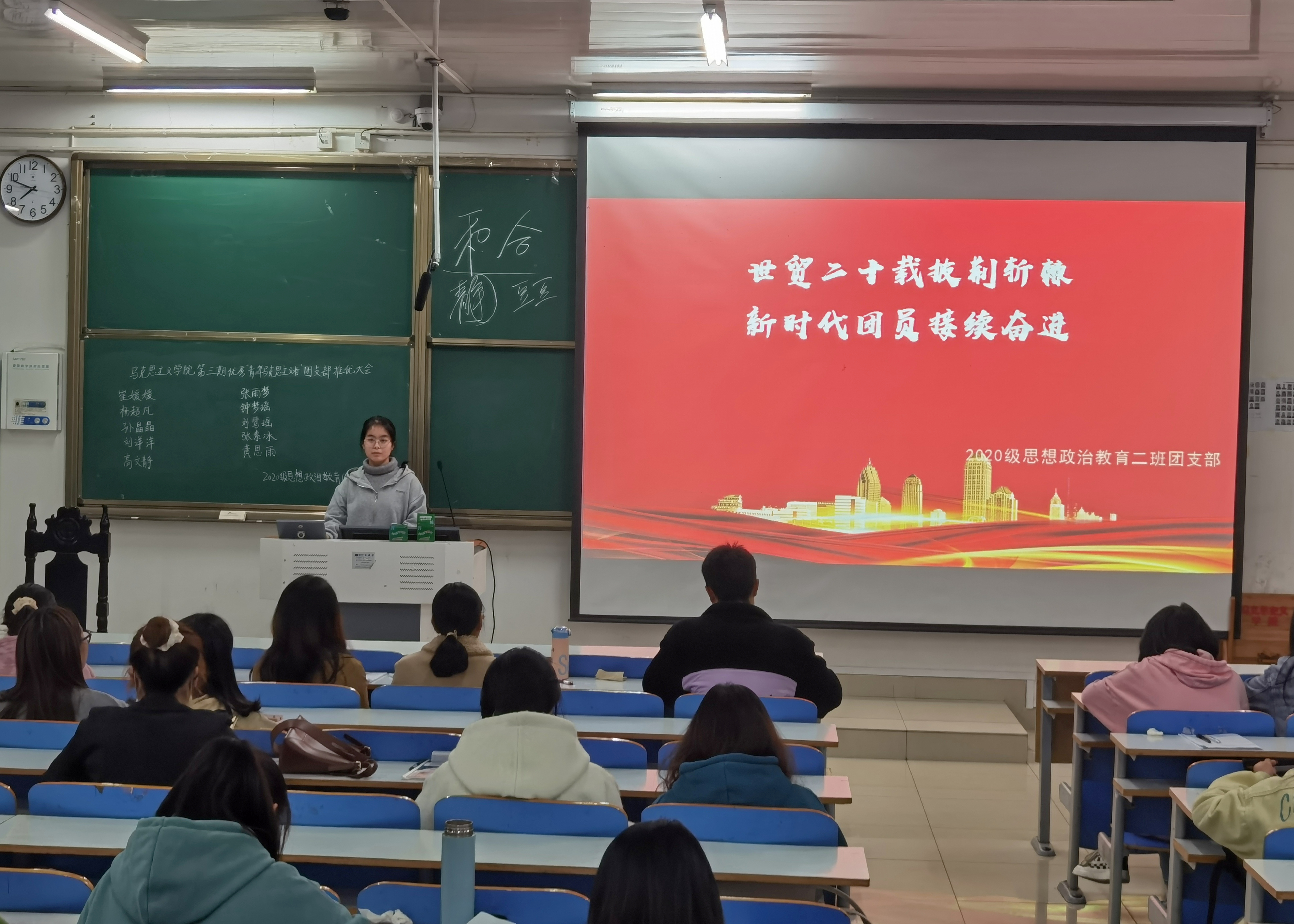 11月19日晚,德赢AC米兰官网2020级思想政治教育二班、定向二班在社科楼516教室召开“世贸二十载披荆斩棘,新时代团员接续奋进”主题团课。2020级思想政治教育二班、定向二班全体团员共同参与本次团课。团课由黄思雨讲授。