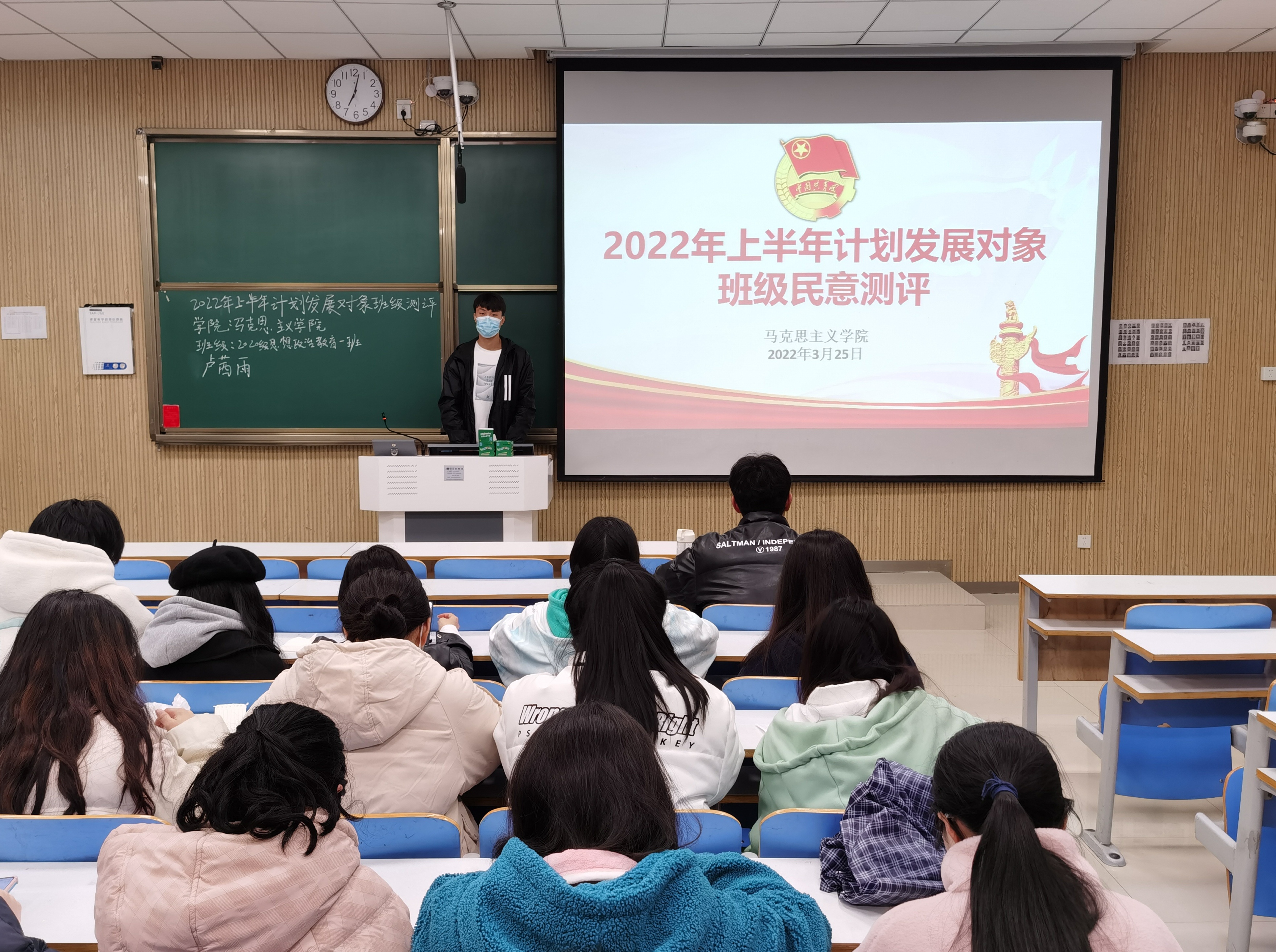 为进一步发展壮大党员队伍,为党支部注入新的活力,3月25日晚,德赢AC米兰官网2020级思想政治教育二班在社科楼515教室召开2022年上半年党员计划发展对象班级民意测评会。2020级思想政治教育二班全体团员共同参加本次会议。会议由团支书陈宇航主持。