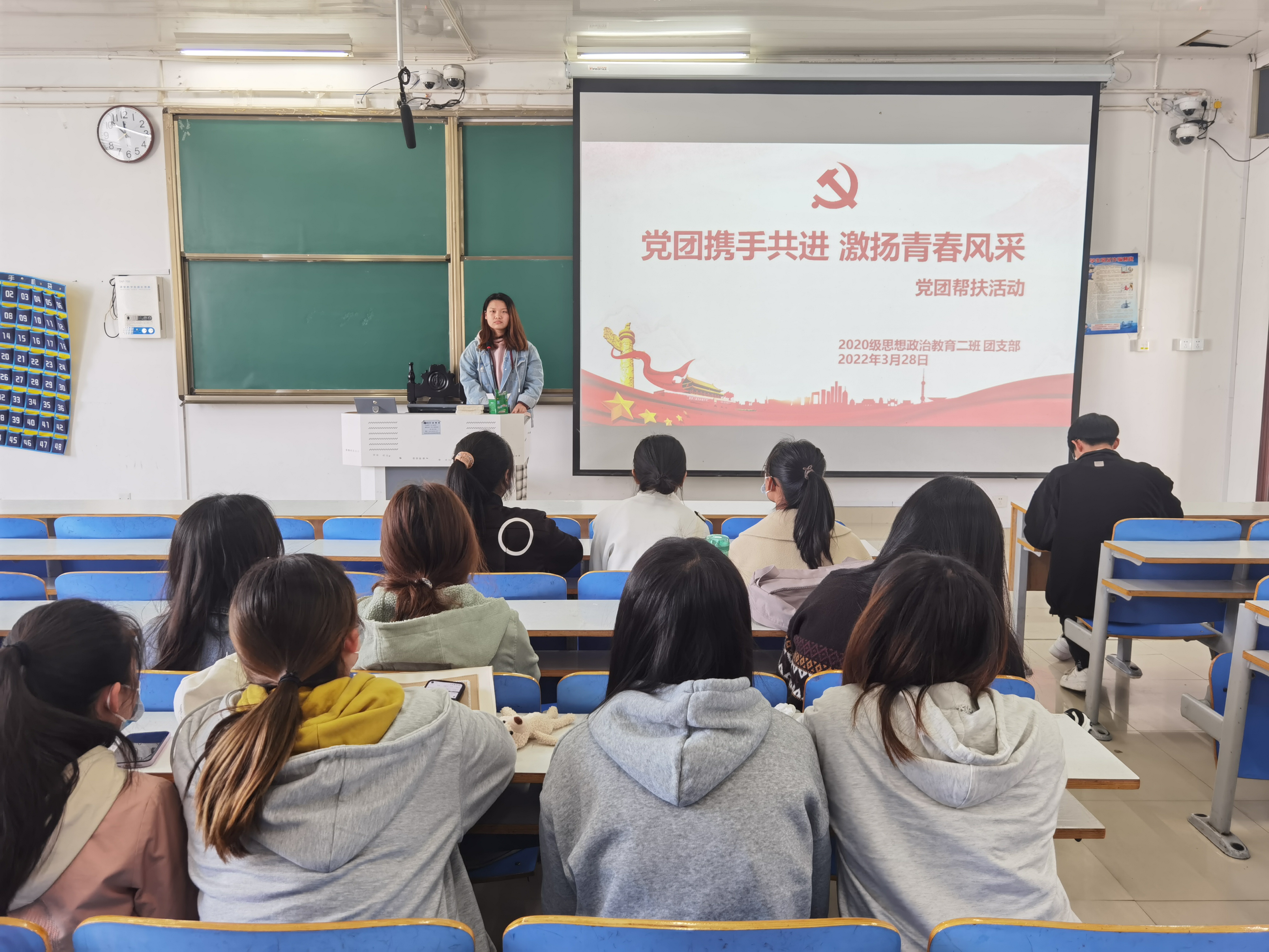 3月28日上午,德赢AC米兰官网2020级思想政治教育二班在社科楼514教室召开“党团携手共进,激扬青春风采”党团帮扶主题班会。2019级预备党员代表王明亮、周永宁及2020级思想政治教育二班全体团员共同参与本次班会。班会由团支书陈宇航主持。