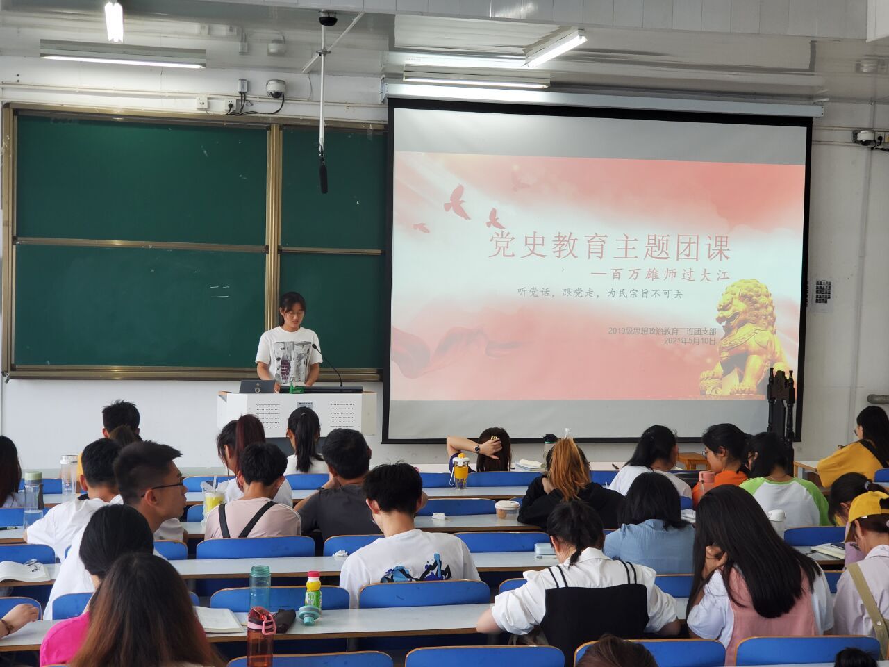 为提高学生思想站位,强化责任担当,5月10日上午,德赢官网2019级思想政治教育二班在社科楼516教室召开“百万雄师过大江”党史教育主题团课。2019级思想政治教育二班全体成员共同参会。会议由团支书孙雅娴主持。