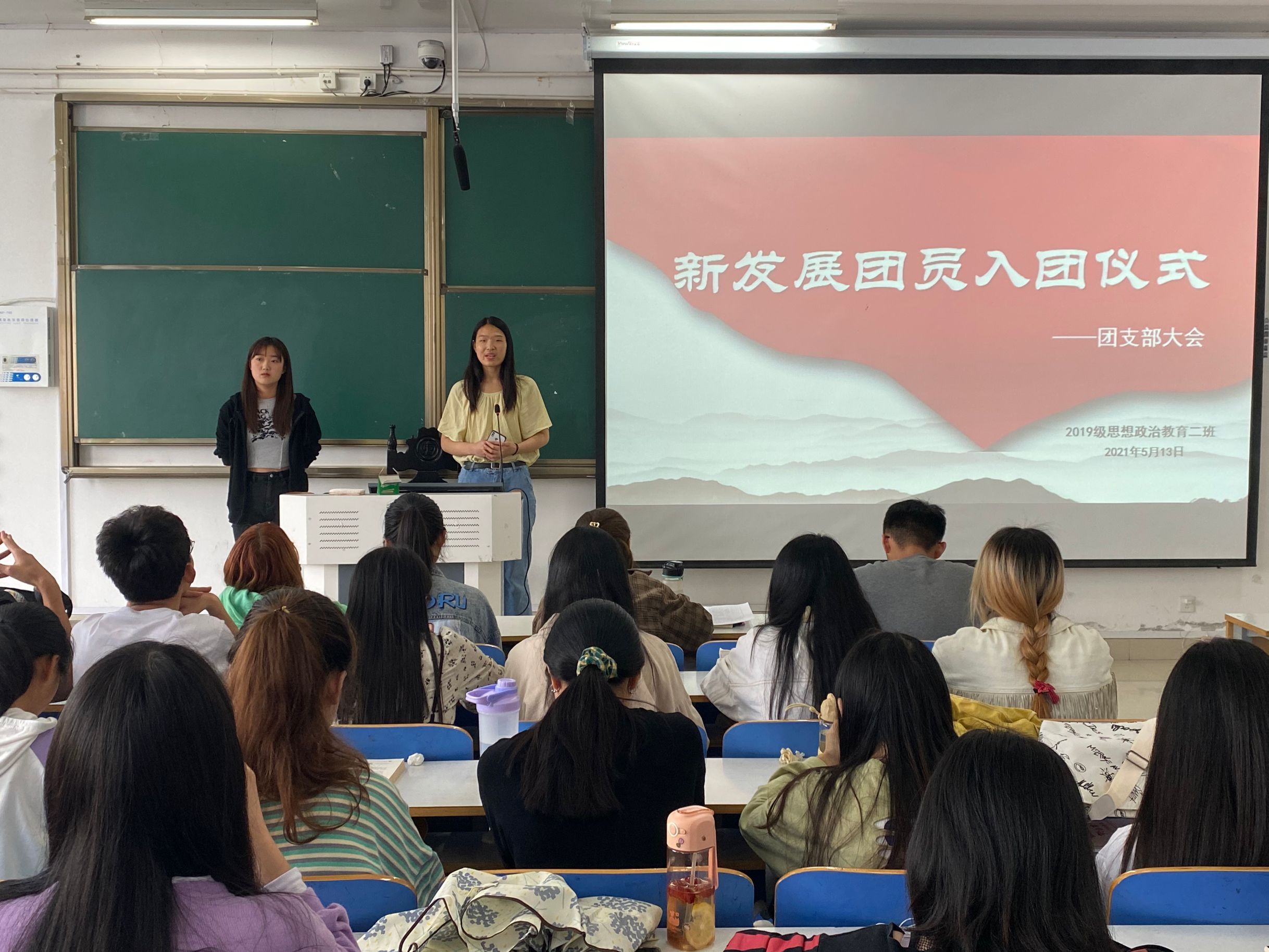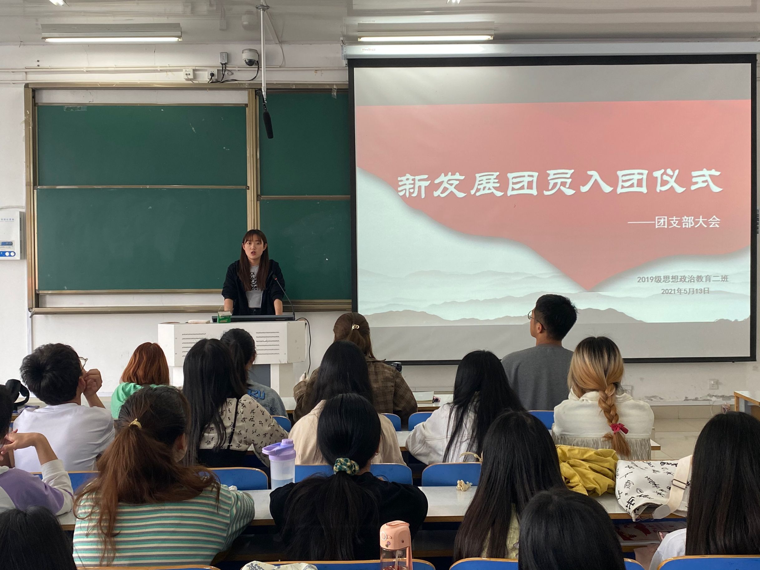 5月13日上午,德赢AC米兰官网2019级思想政治教育二班在社科楼516教室召开“新发展团员入团仪式”团支部大会。2019级思想政治教育二班全体同学参加了本次大会,大会由团支书孙雅娴主持。