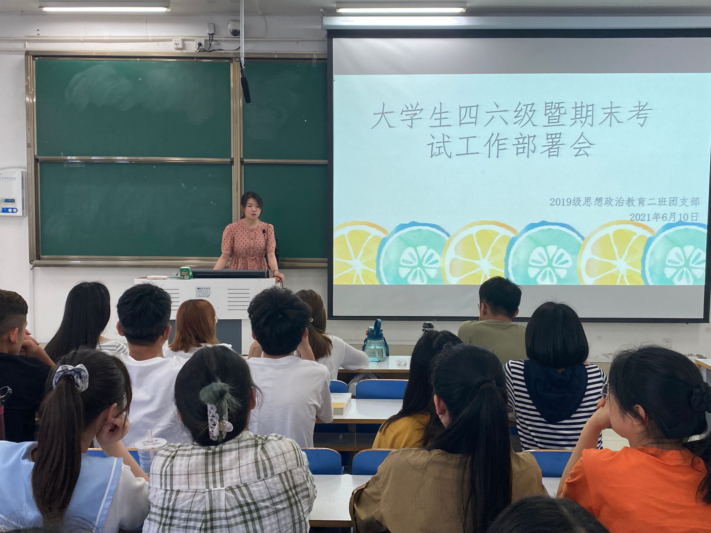 为严肃考风考纪,营造良好的学习、考试氛围,6月10日上午,德赢官网2019级思想政治教育二班在社科楼516教室召开大学生四六级暨期末考试部署会。团委老师陶青青及2019级思想政治教育二班全体成员共同参会。会议由陶青青主持。