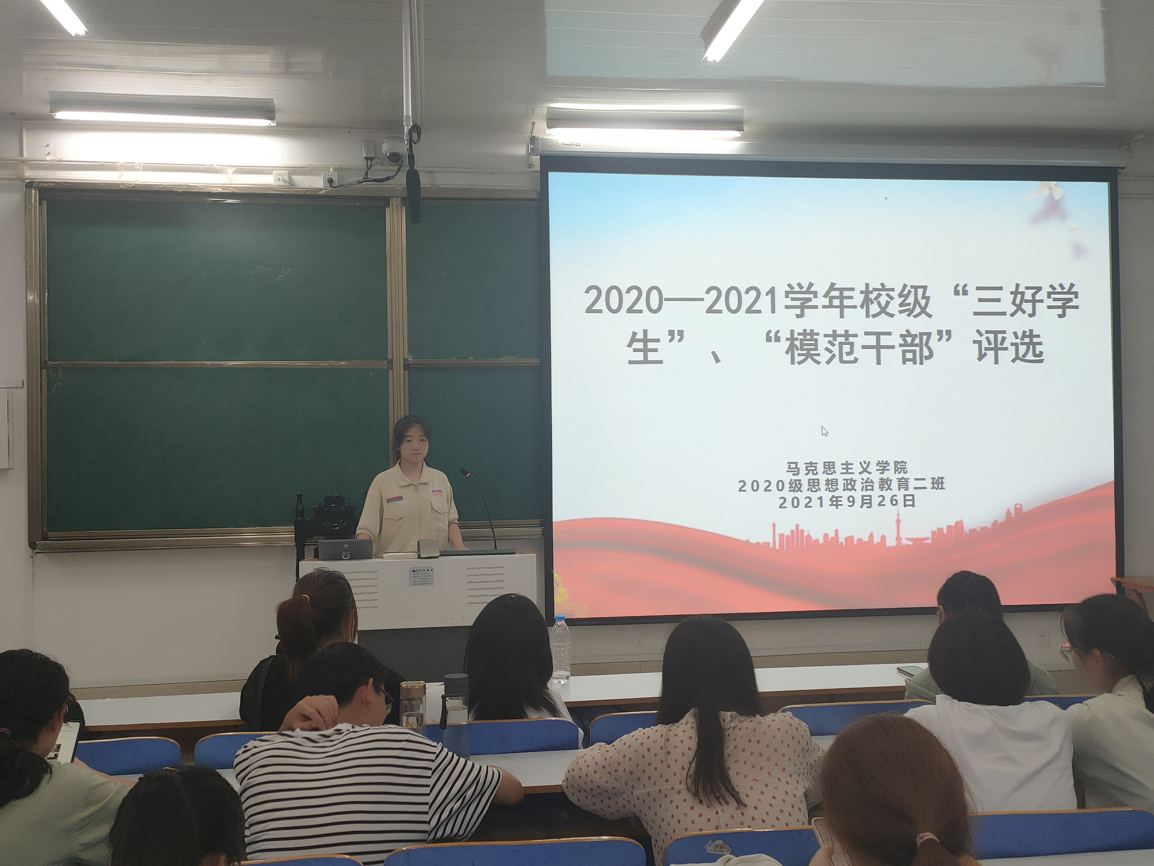 9月26日晚上,德赢AC米兰官网2020级思想政治教育二班“三好学生”“模范干部”评选会在社科楼514教室顺利召开。二班全体同学参与本次会议。会议由班长孙雪主持。